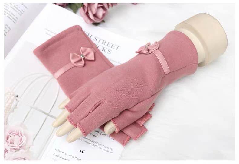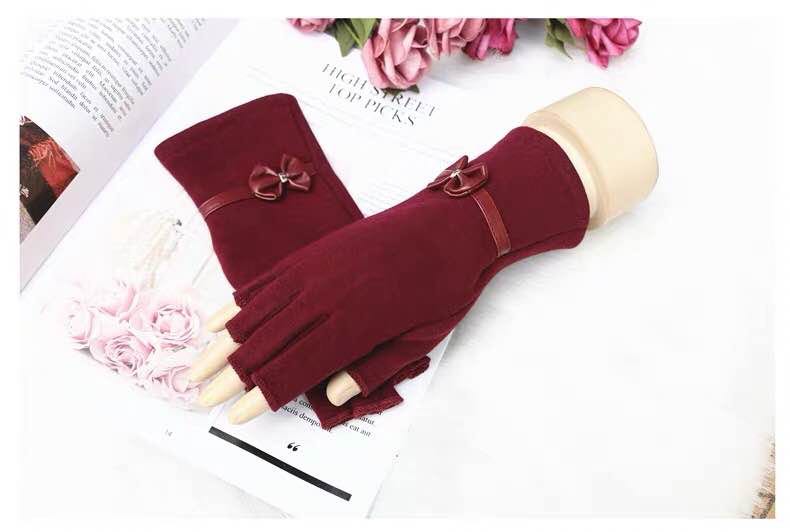 厂家直销新款不倒绒半指漏指手套钓鱼手套女士保暖手套