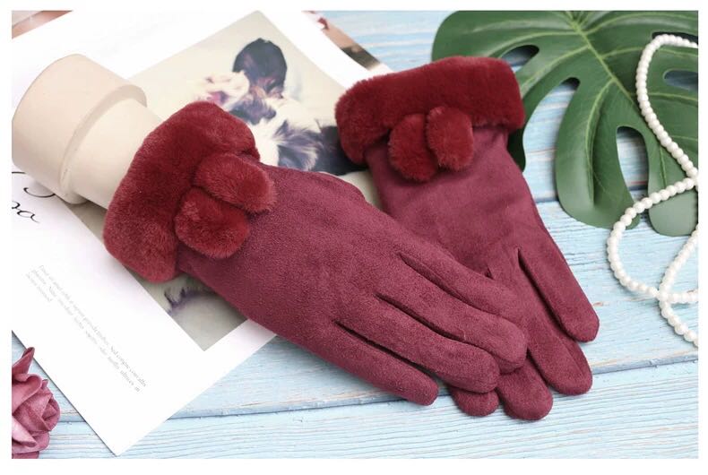 厂家直销新款冬季加厚保暖麂皮绒手套北极绒里布双层触屏手套