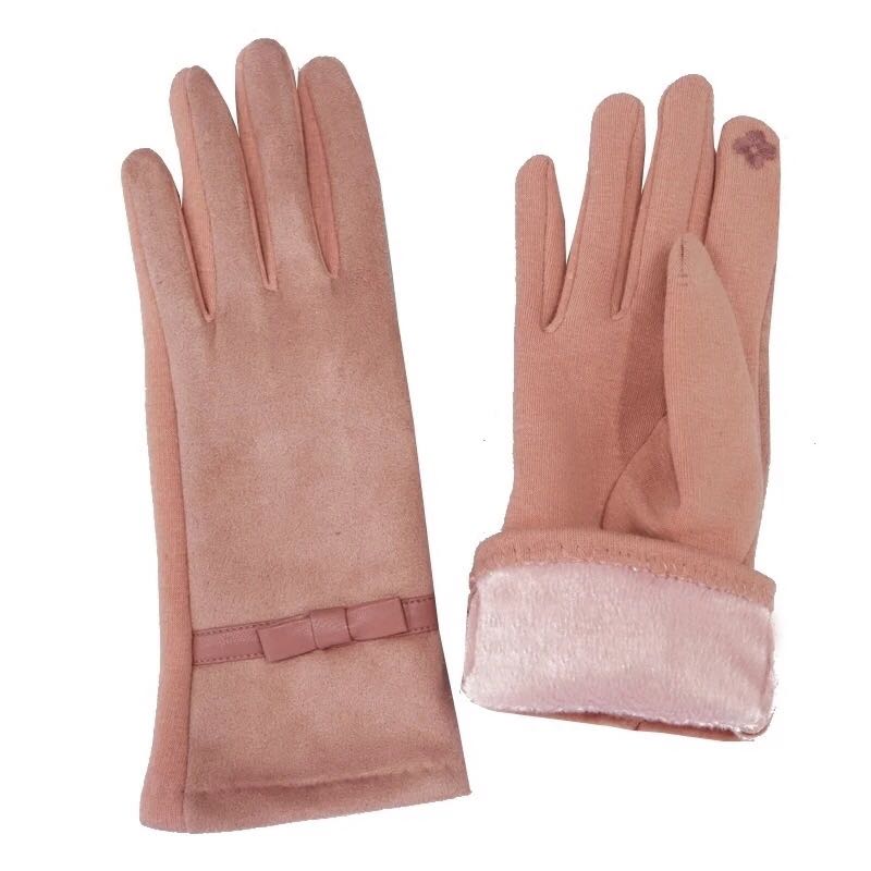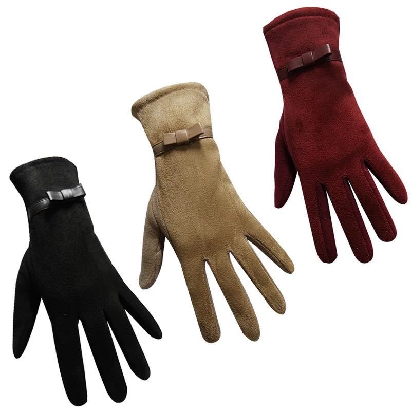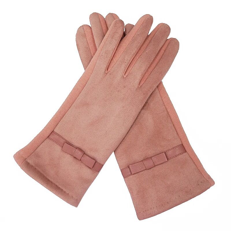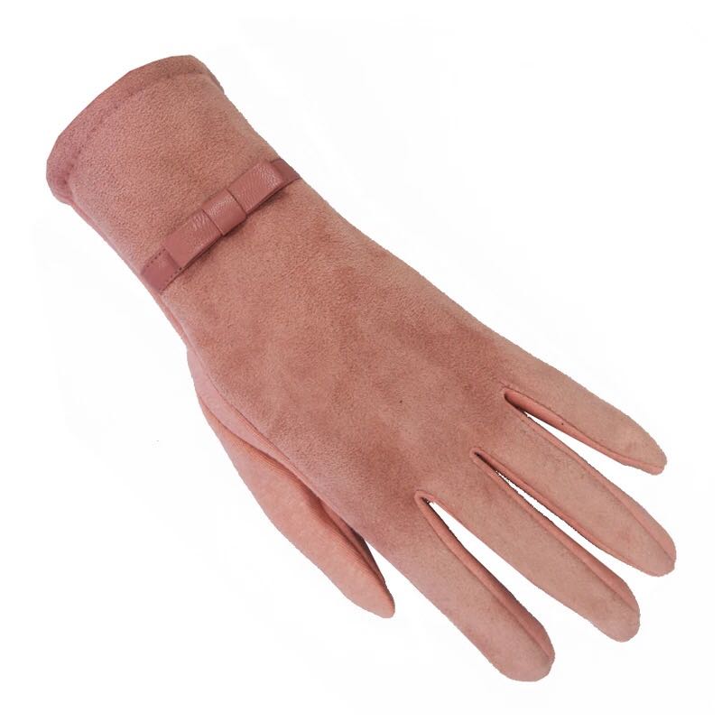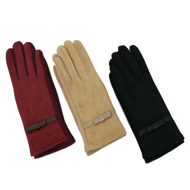 厂家直销麂皮绒不倒绒ab版触屏手套简约时尚蝴蝶结女士保暖手套