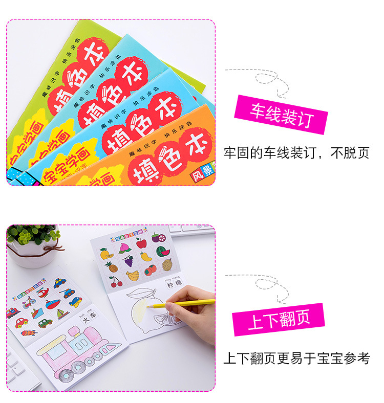儿童图画填色本拼音汉字宝宝涂色书画本男孩女孩绘画画册8本一套
