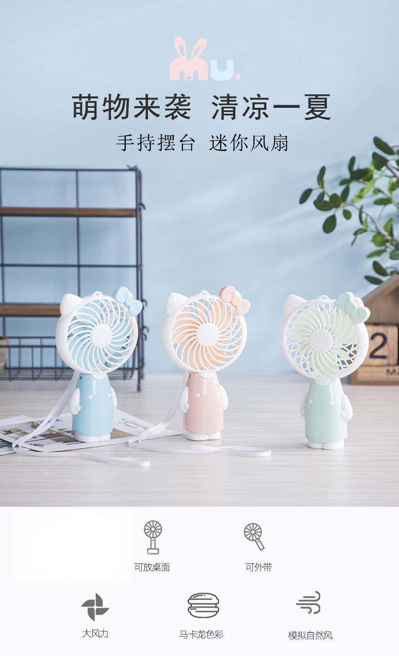 新品萌物猫usb风扇充电手持可折叠可爱随身办公室学生宿舍大风力