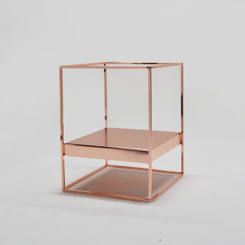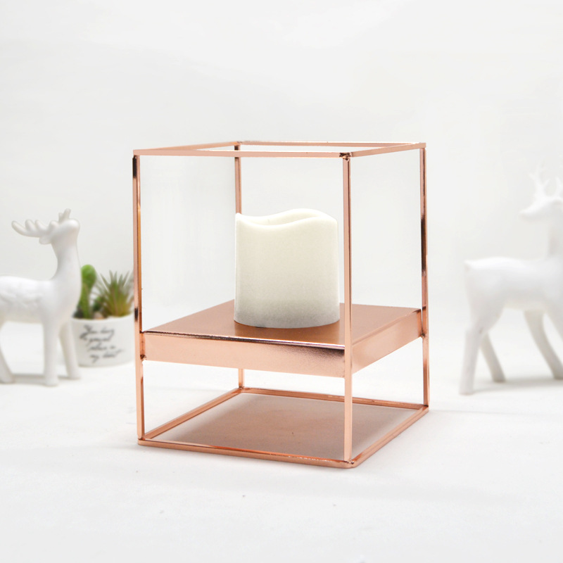 外贸专供小号玫瑰金魔方现代几何空间居家摆饰烛台