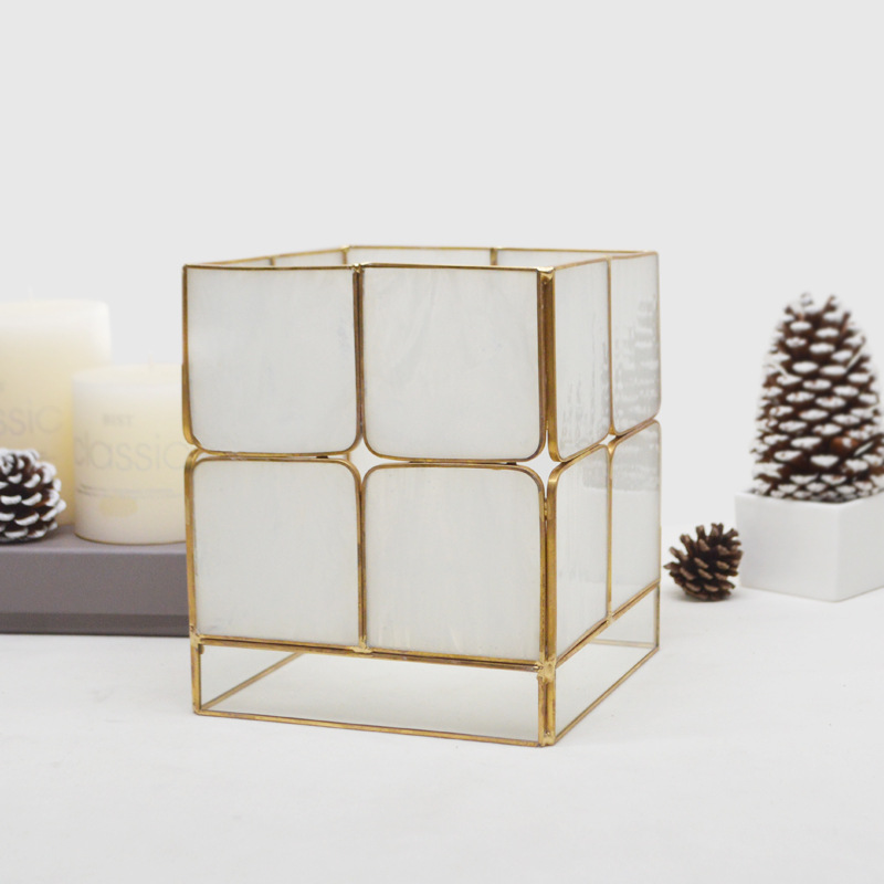 外贸专供外贸专供铜色中号方格怀旧风白色粉色玻璃风灯