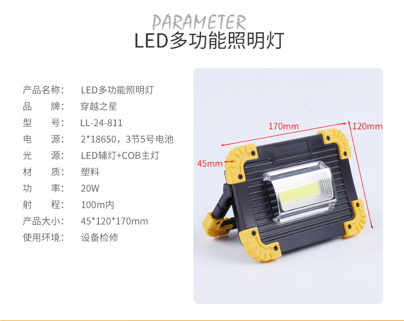 外贸专供户外led投光灯广场应急灯停电照明露营工地多功能充电