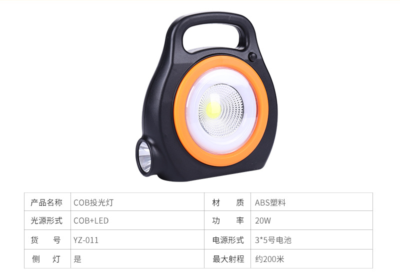 外贸专供COB投光灯户外手提工作灯 野营高亮度投光灯