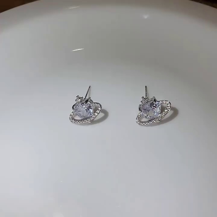 S925银ins潮微镶百搭气质耳环轻奢小众精致锆石星球耳钉韩国新款