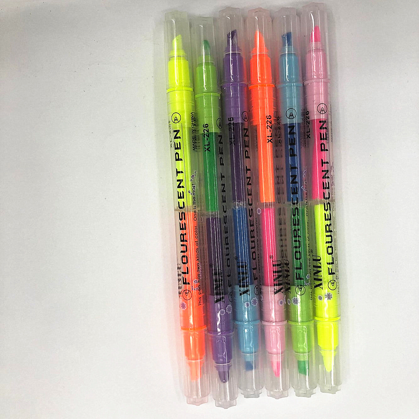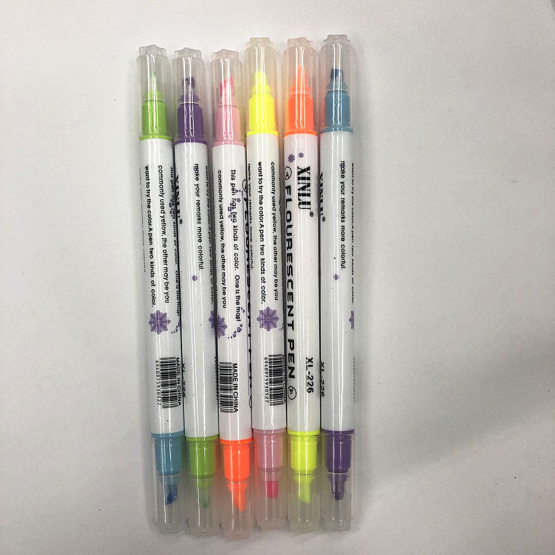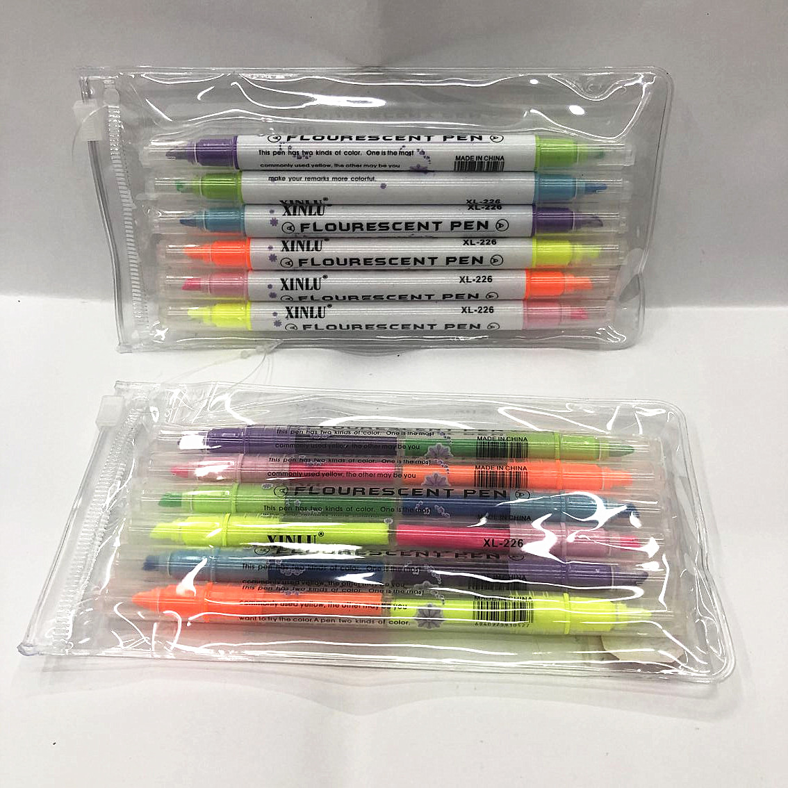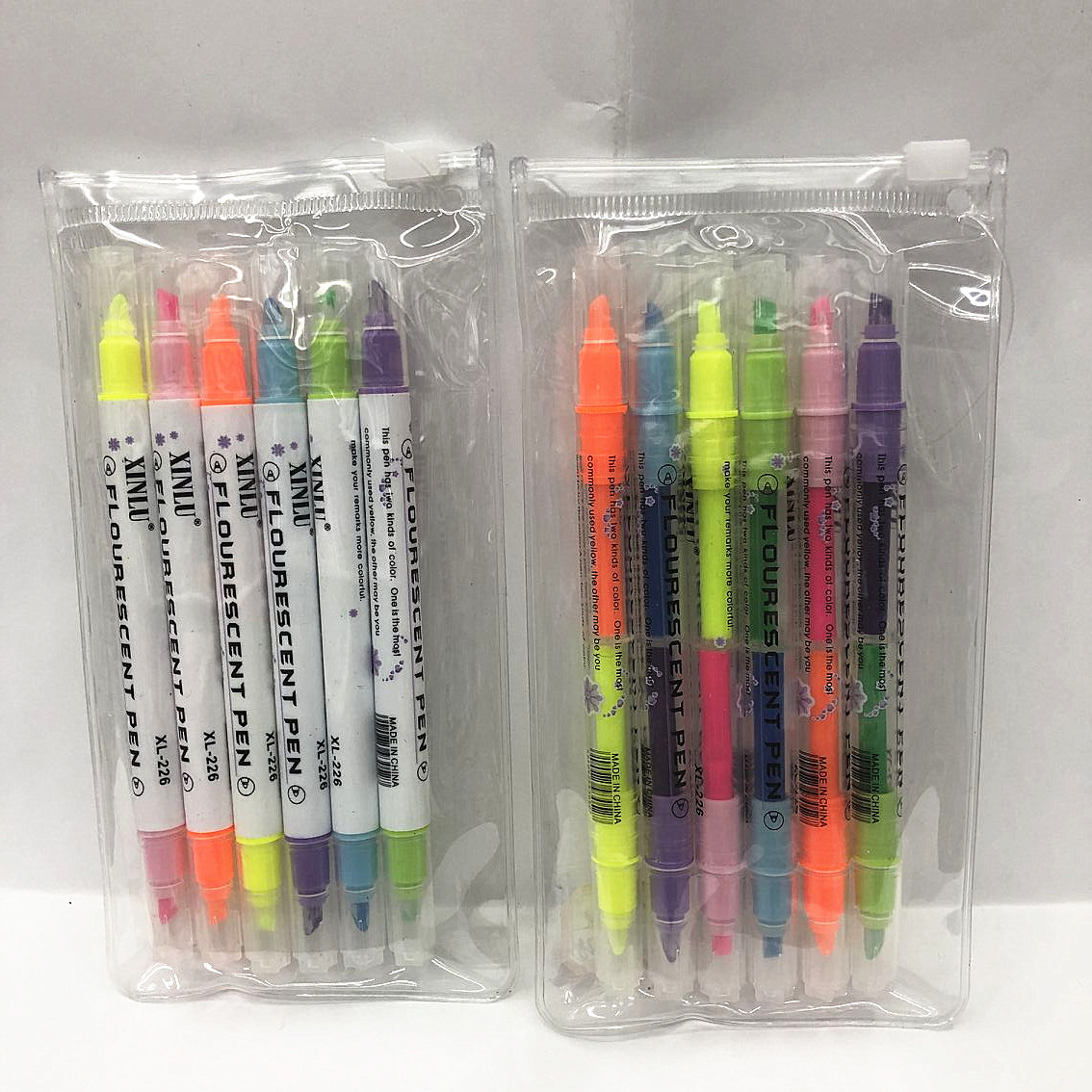 双头双色荧光笔彩色笔荧光记号笔6支PVC袋装