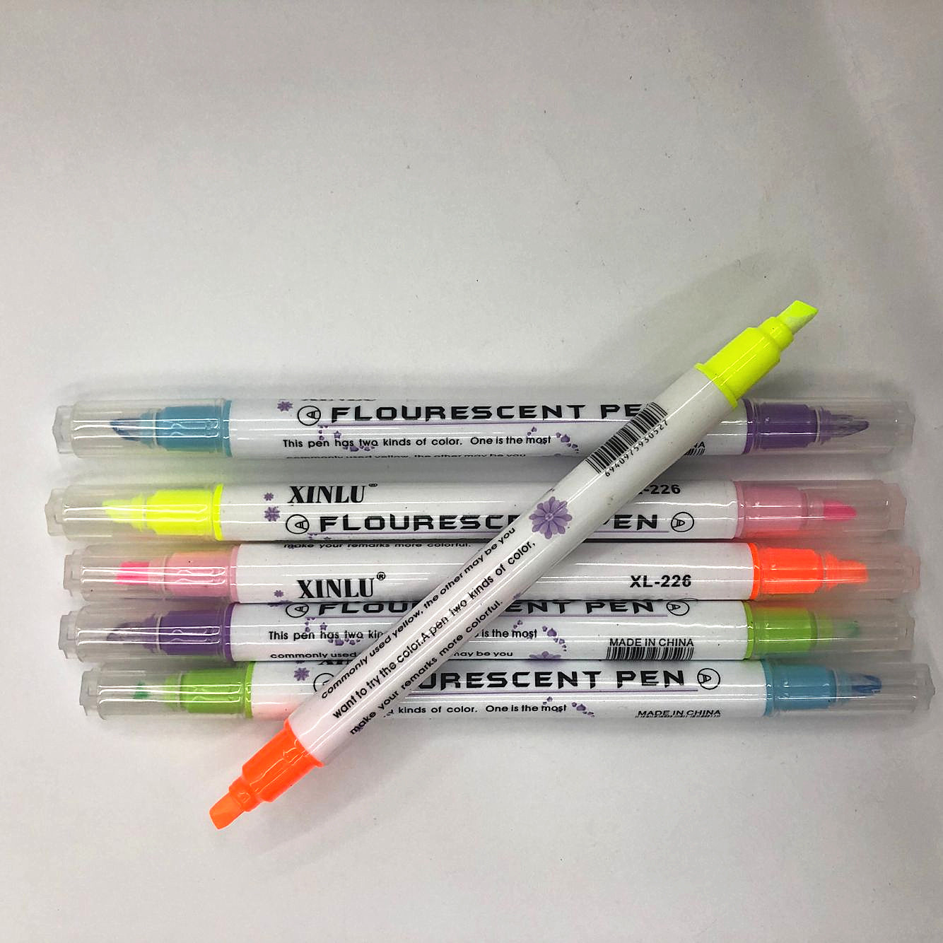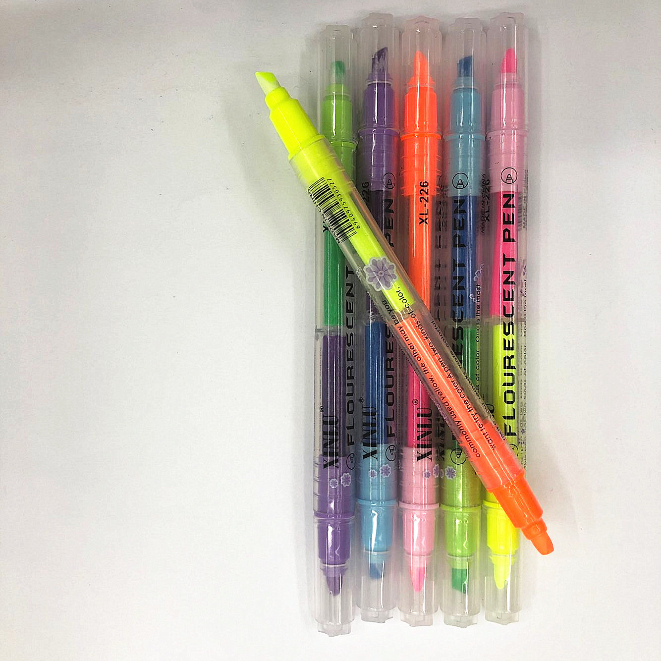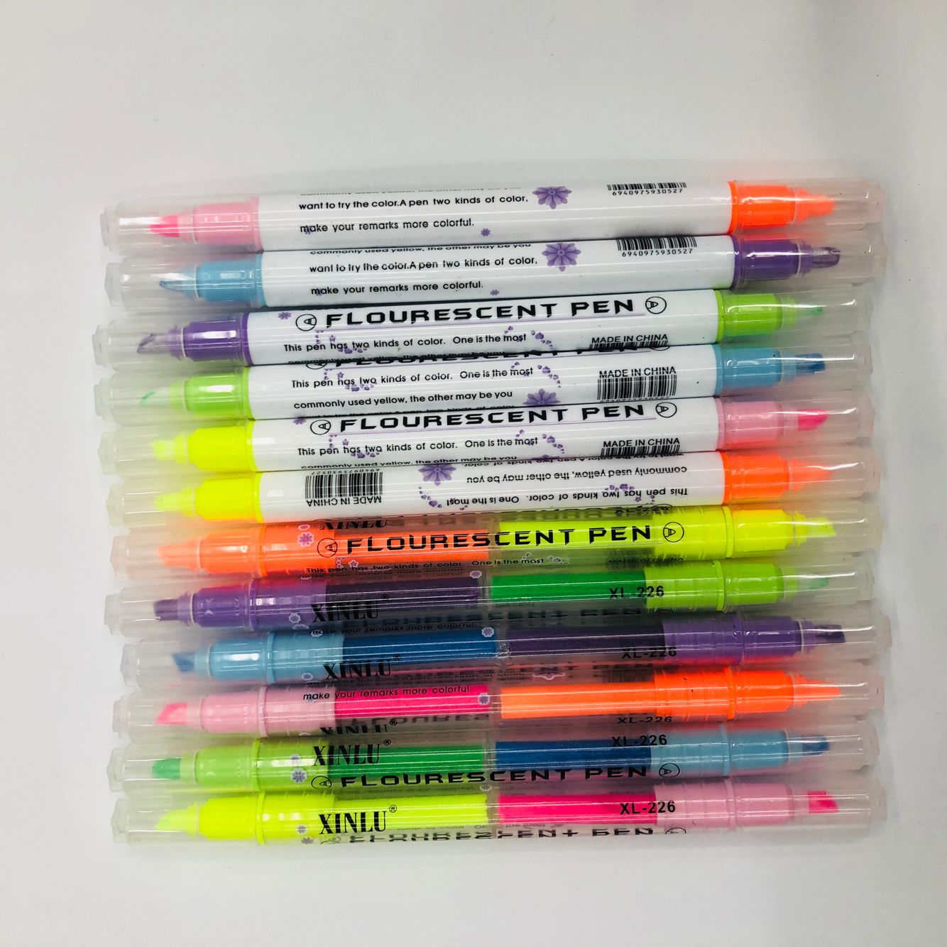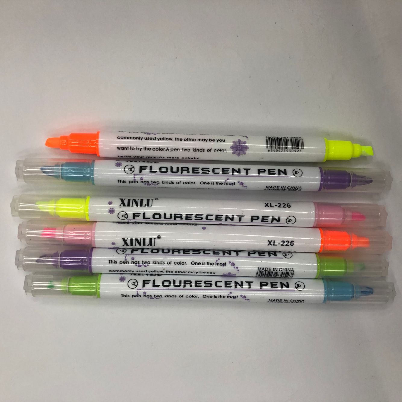 双头双色荧光笔彩色笔荧光记号笔6支PVC袋装