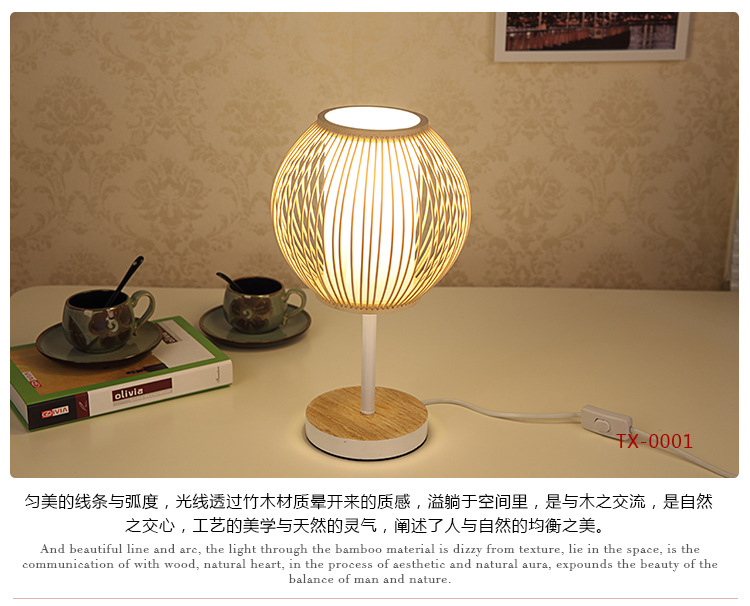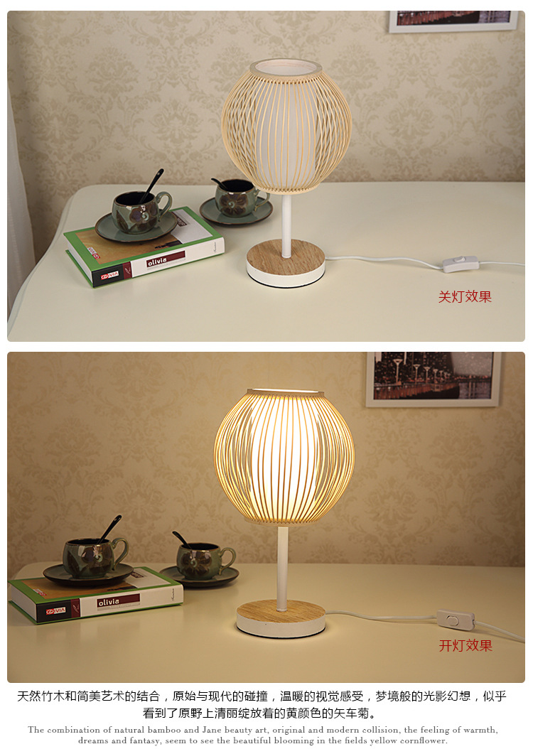 外贸专供 仿羊皮纸竹制台灯 卧室床头灯