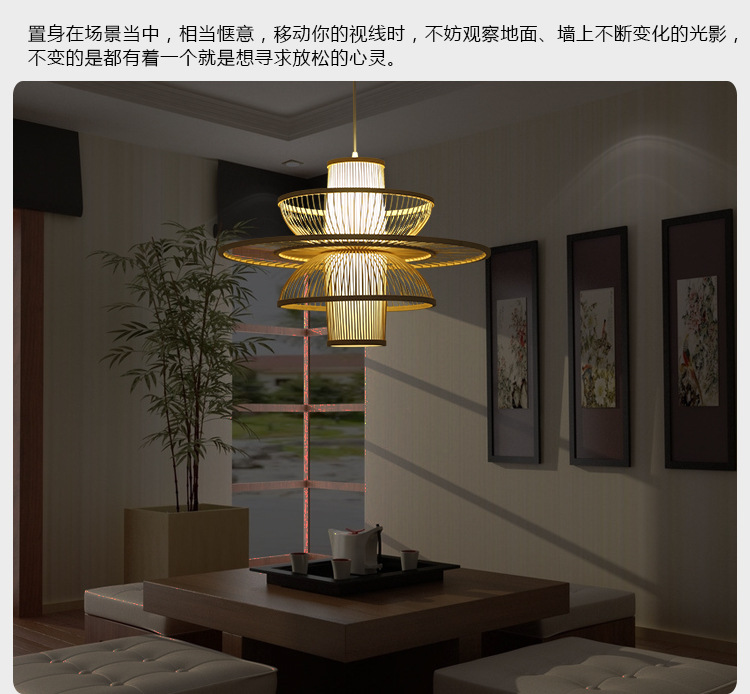 外贸专供外贸专供创意新中式禅意吊灯茶室客厅灯具竹艺