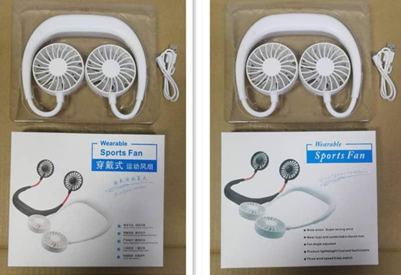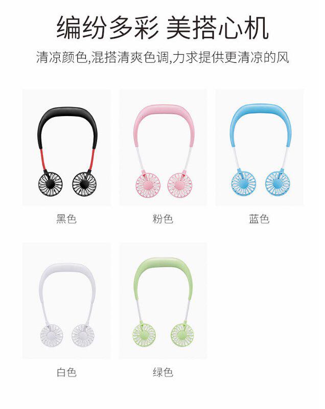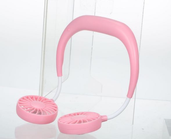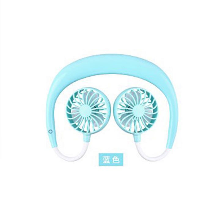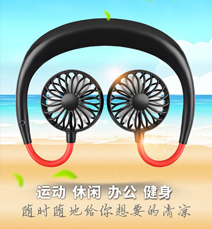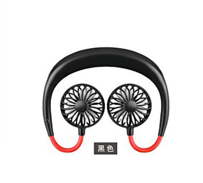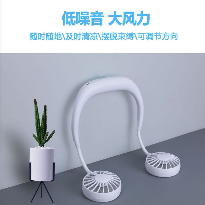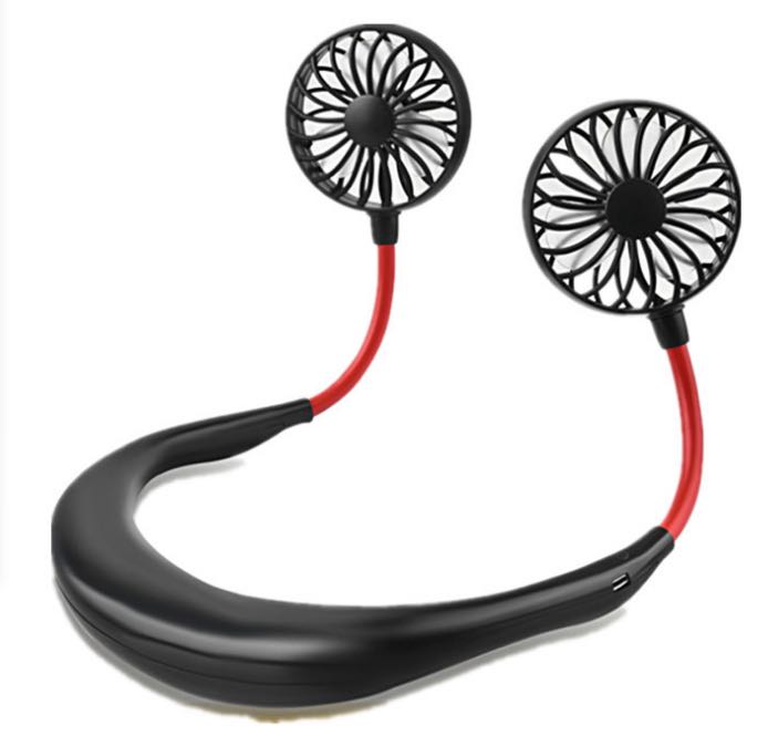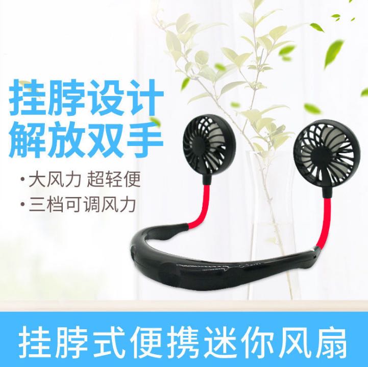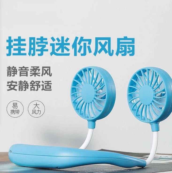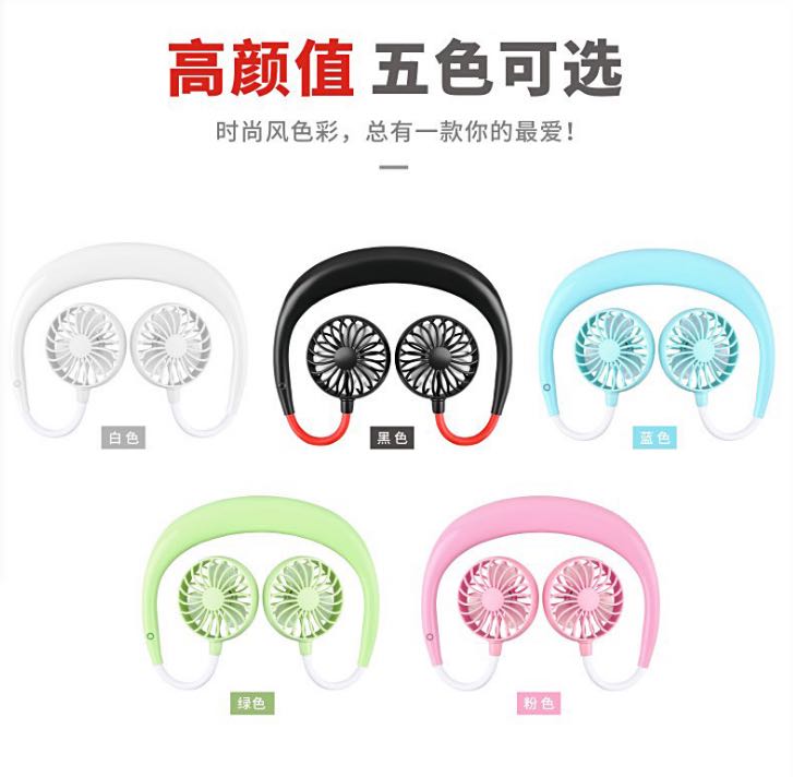便携懒人充电小风扇 穿戴式USB充电迷你双头小风扇 挂脖运动