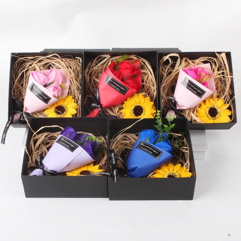 3朵香皂玫瑰花束向日葵礼盒情情人节礼物公司活动赠品工厂直销