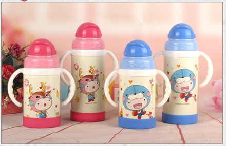 儿童吸管保温壶粉色、蓝色翻盖设计、保证吸管卫生、可拆卸