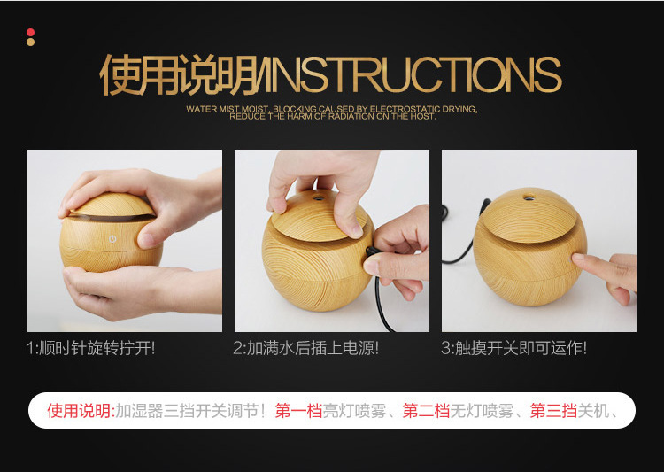 木纹迷你精油雾化器USB超声波小型家用香薰机加湿器喷雾灯礼品