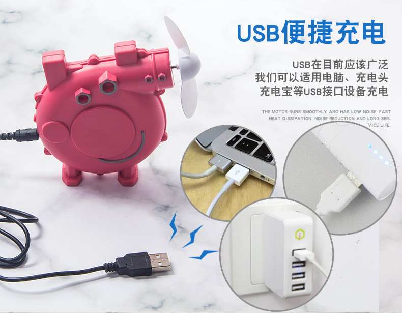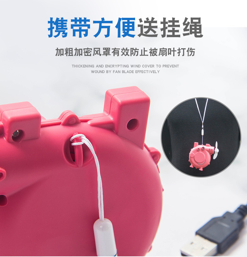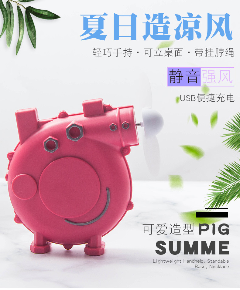 卡通迷你小猪佩奇风扇USB充电便携式手持社会人风扇学生儿童风扇