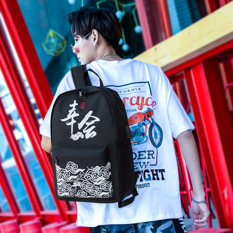 外贸专供新款原创中国风双肩包男外出休闲背包男韩版学生潮流书包