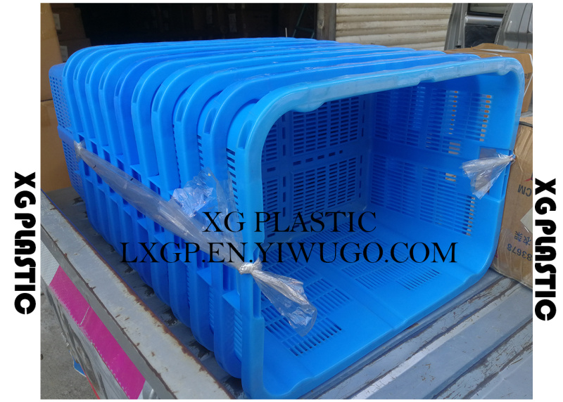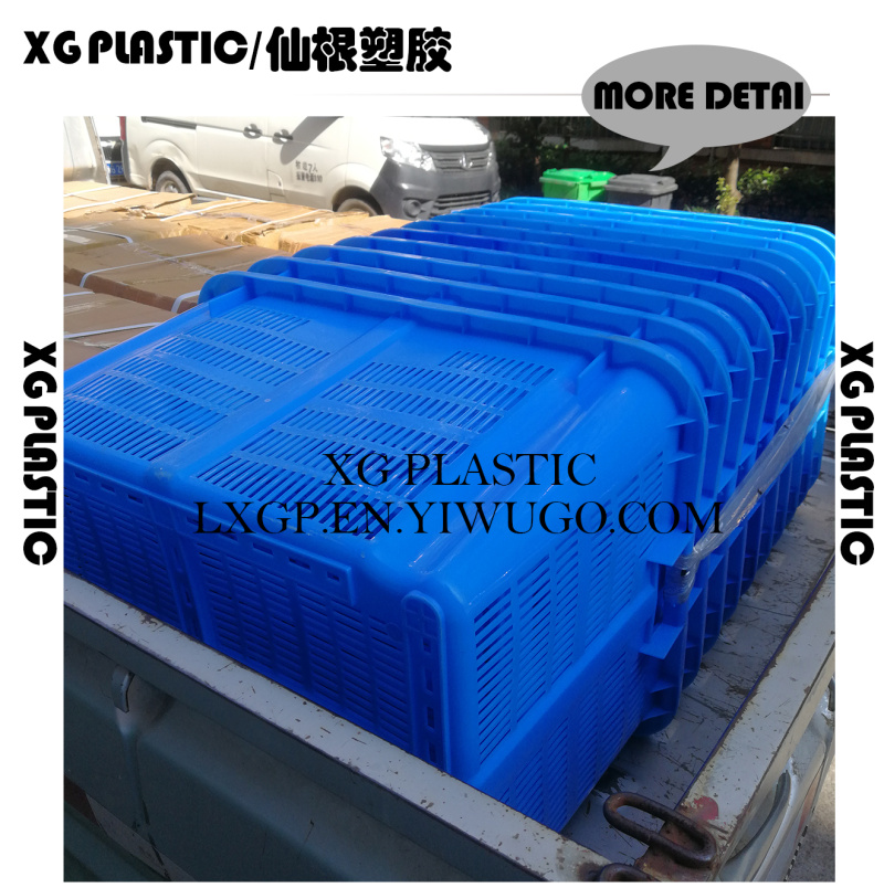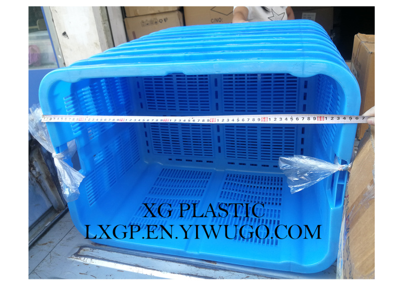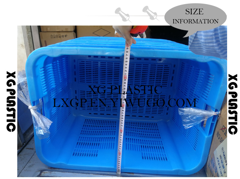 塑料筐置物筐周转箱蔬菜筐长方手提收纳筐蓝色镂空快递杂物运输筐