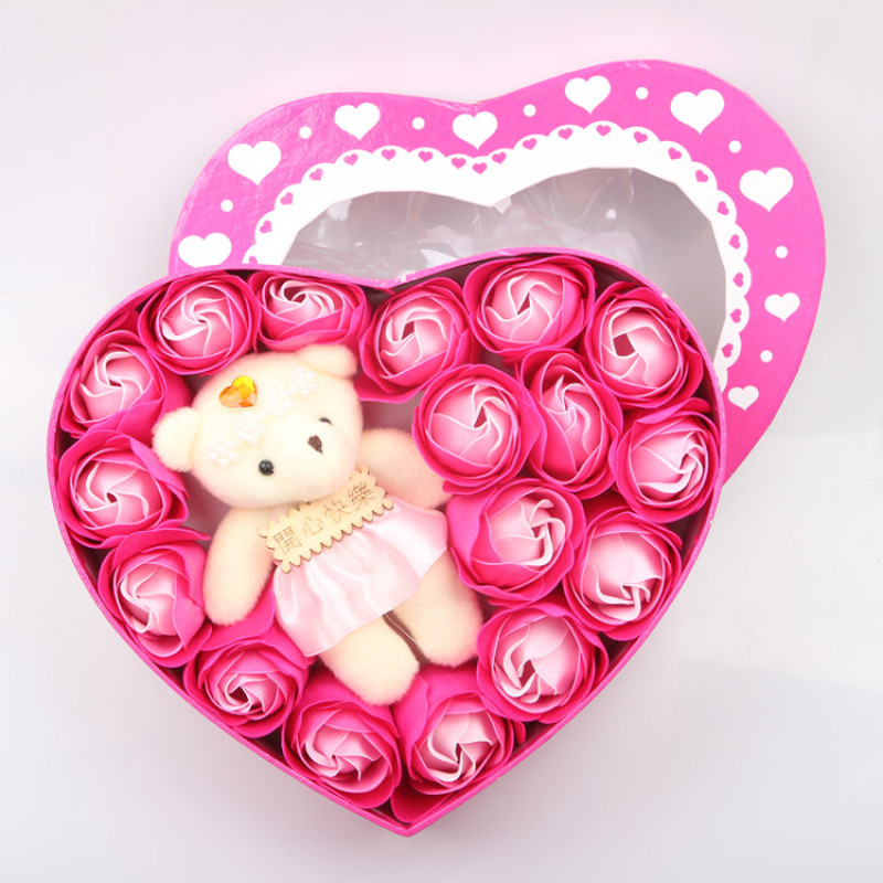 仿真香皂玫瑰花18朵加小熊礼盒公司商务活动回礼品情人节生日礼物