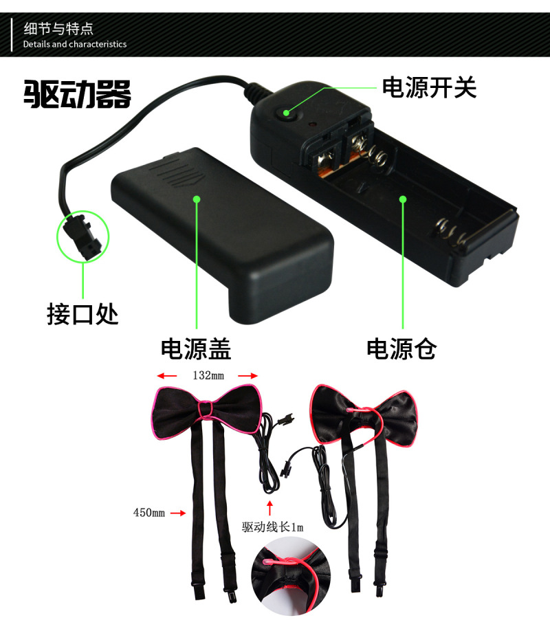 外贸专供冷光线el声控驱动器发光领结闪光领带