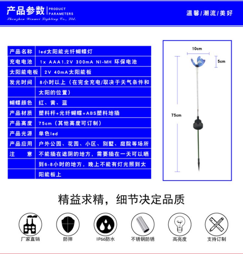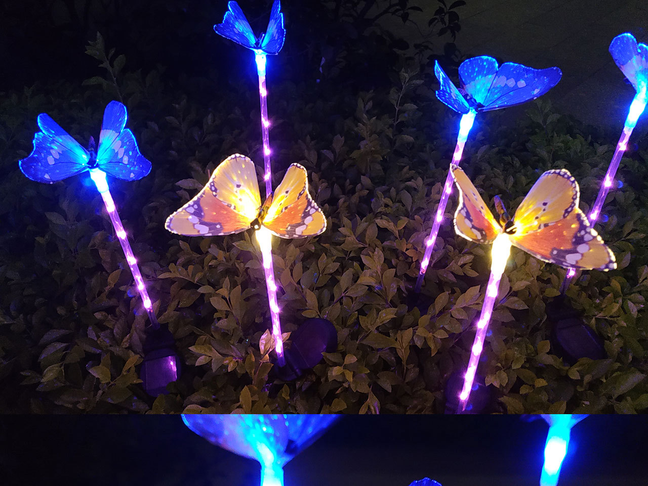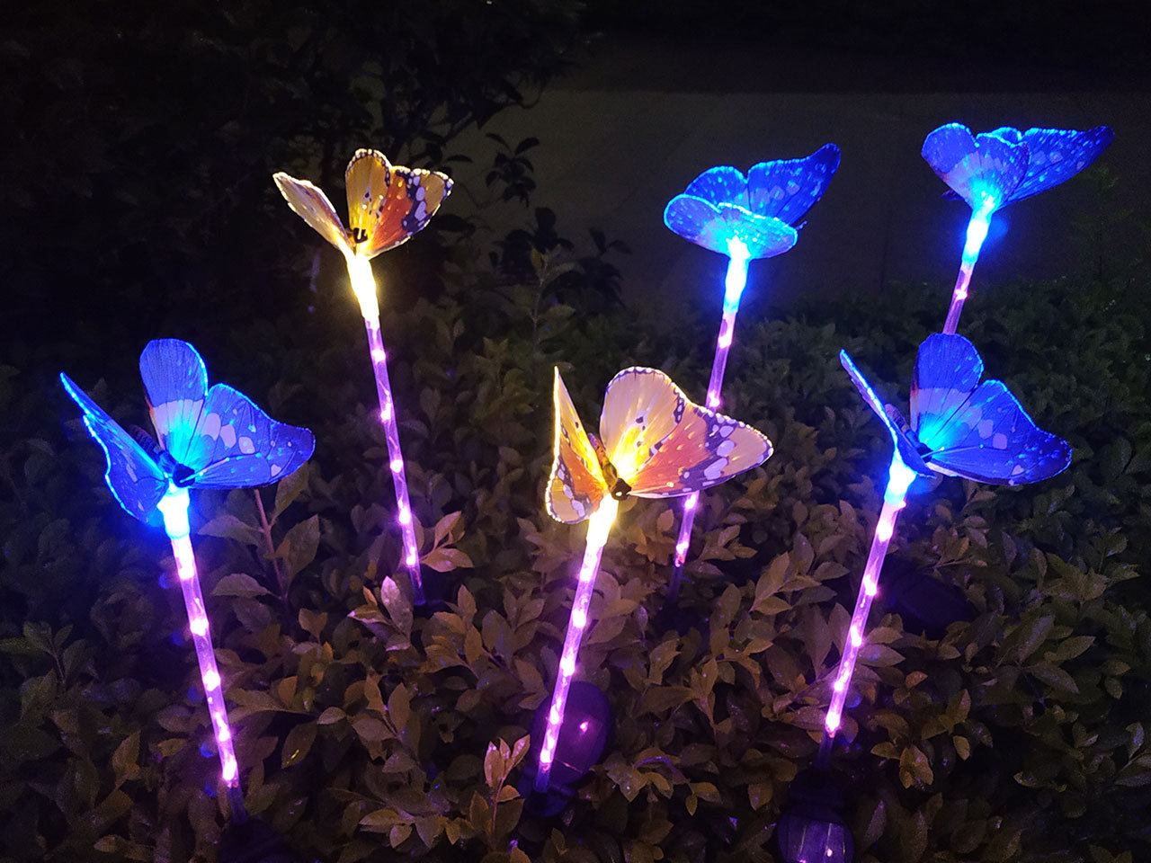 外贸专供太阳能光纤蝴蝶灯 户外花园草坪景观装饰灯