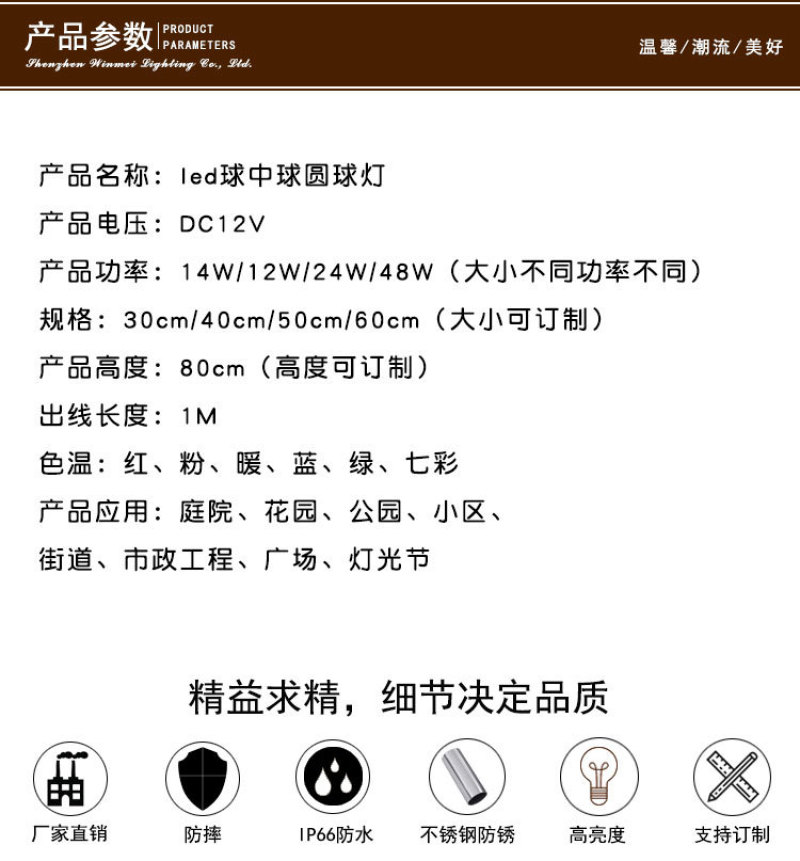 外贸专供led景观灯户外圆球地插灯不锈钢球中球小品灯