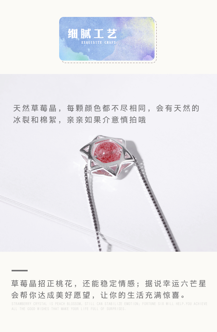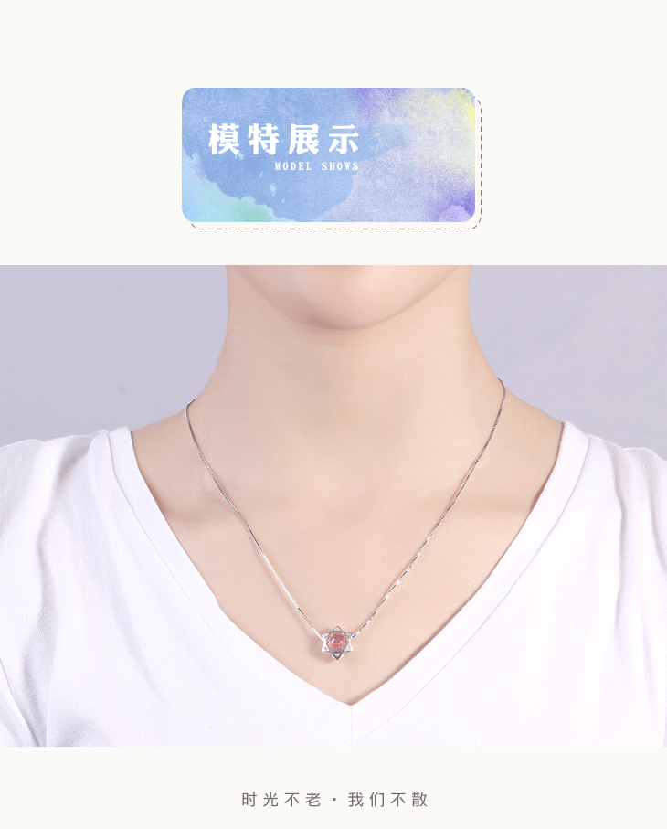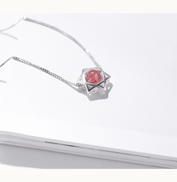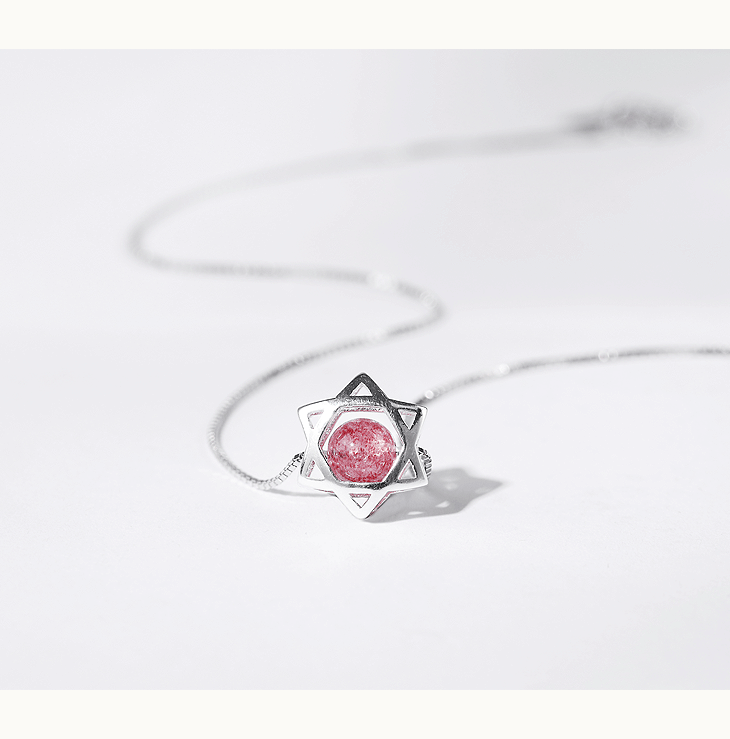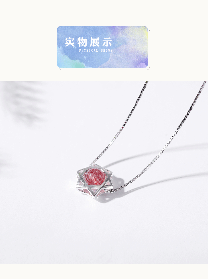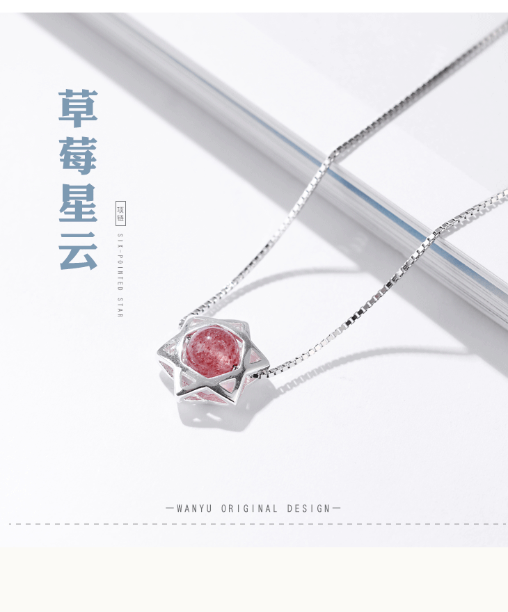 守运原创草莓晶吊坠六芒星泰银女项链锁骨链闺蜜女友生日礼