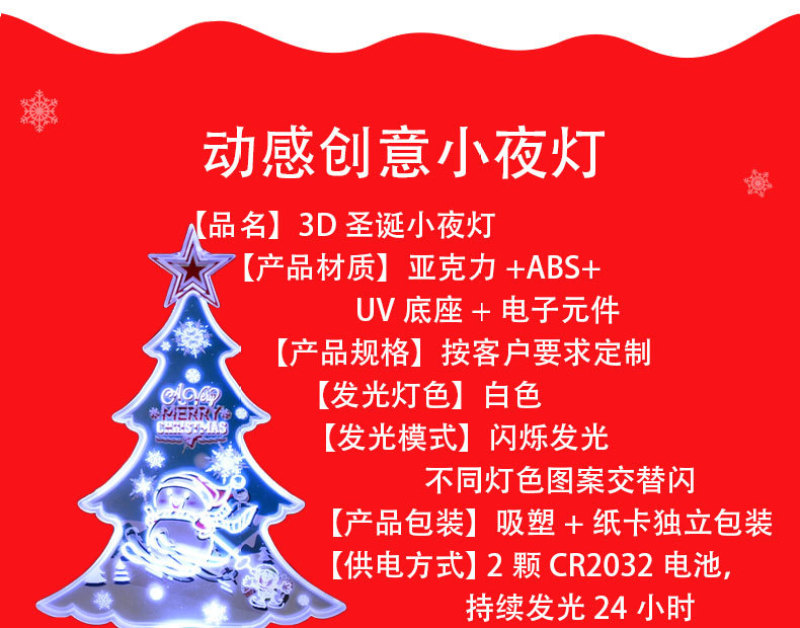 外贸专供圣诞节日小夜灯3D发光亚克力