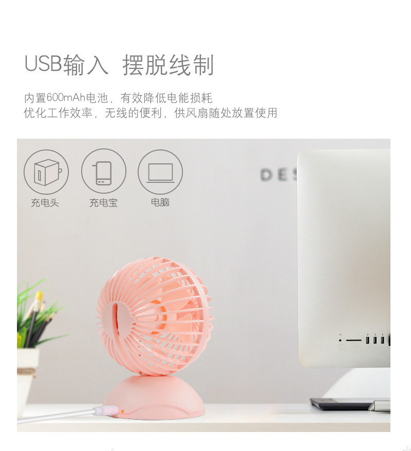usb充电小风扇可旋转办公室桌面台式小风扇学生宿舍卧室静音风扇