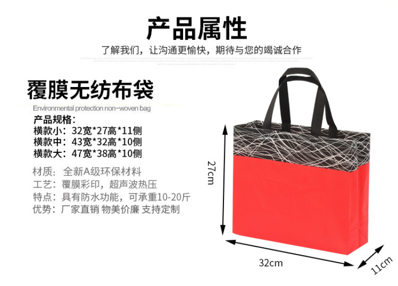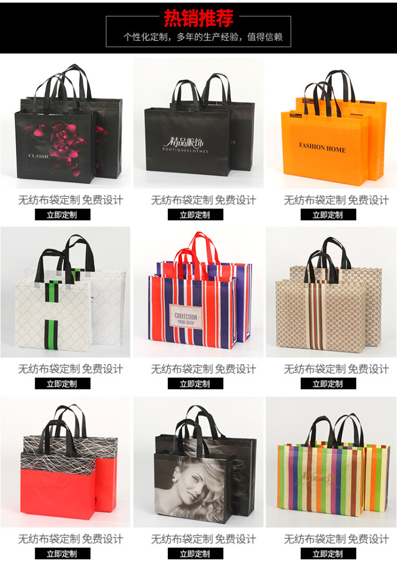 加急定做彩印覆膜无纺布袋子现货广告立体环保手提购物袋订制logo