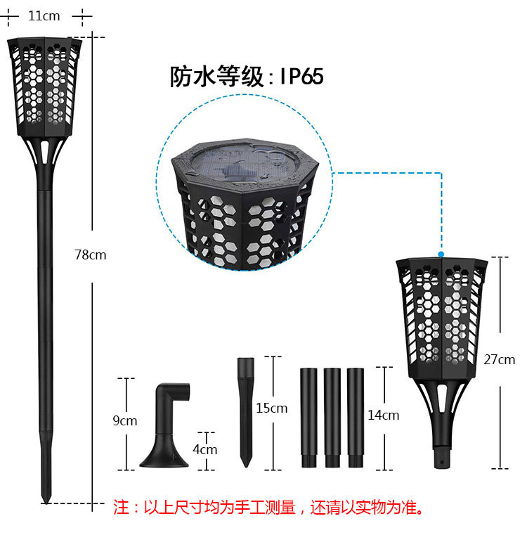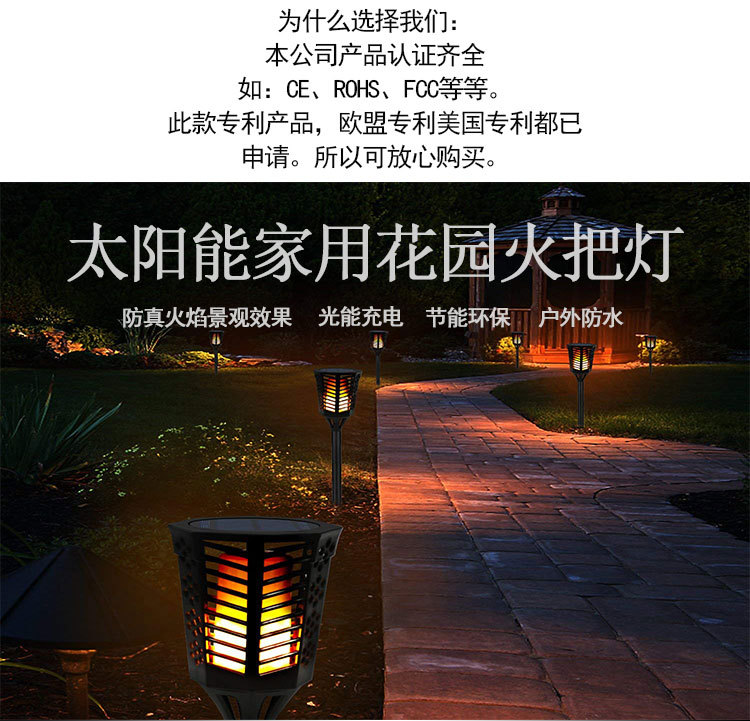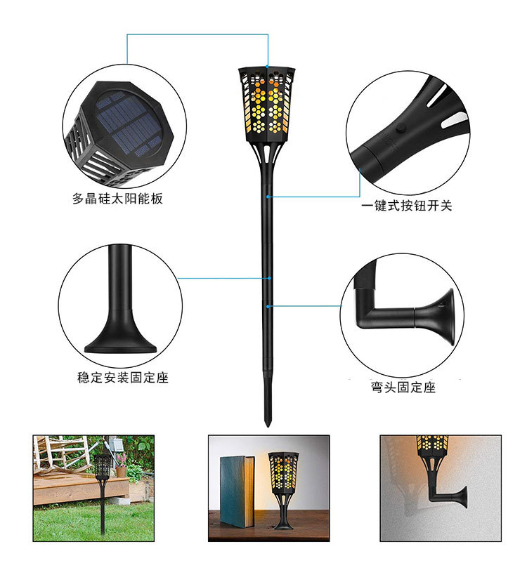 外贸专供太阳能景观火把灯爆款壁灯户外防水庭院草坪地插火焰灯