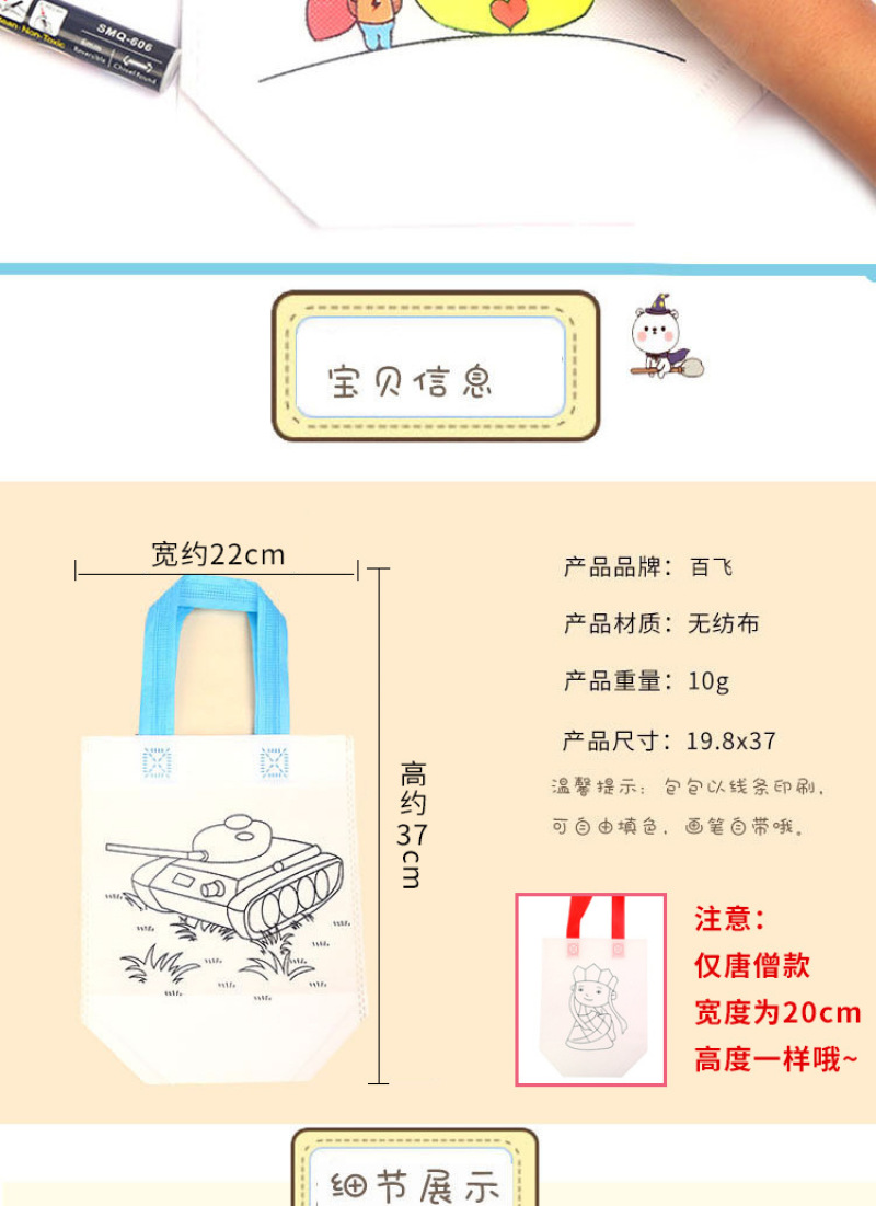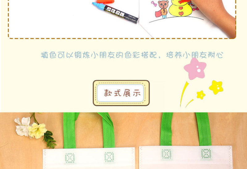DIY环保袋子填色涂鸦包 儿童手工制作涂色绘画材料 无纺布涂鸦袋