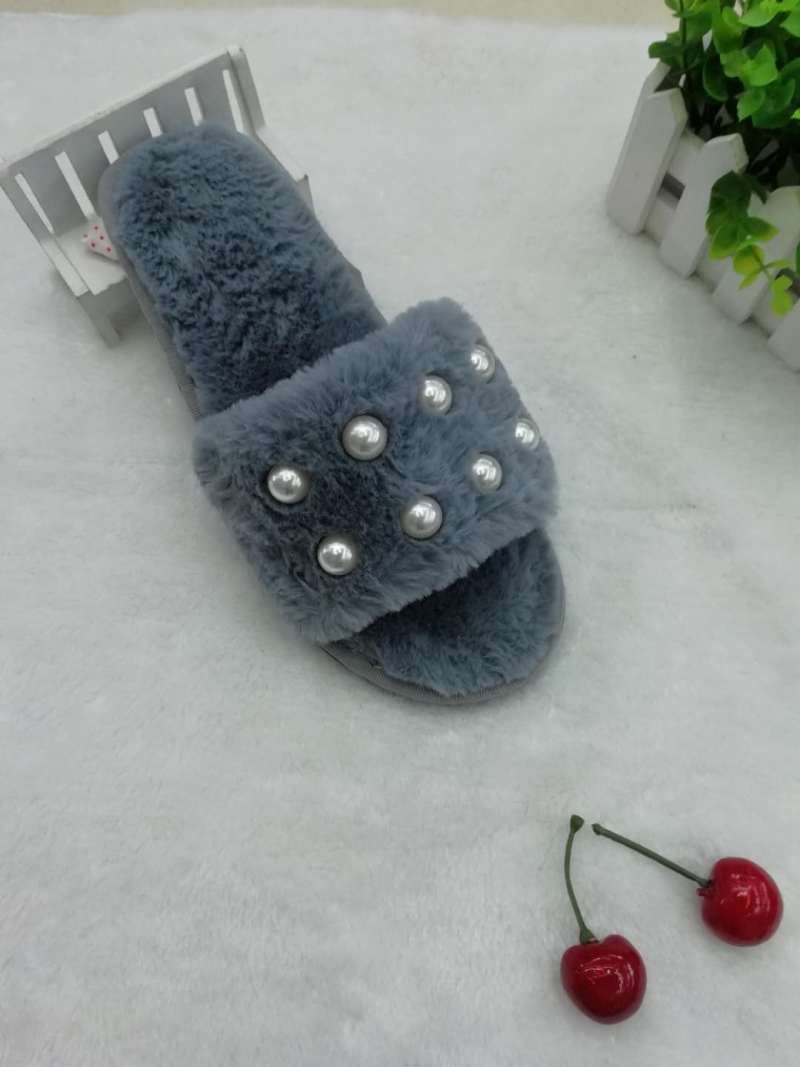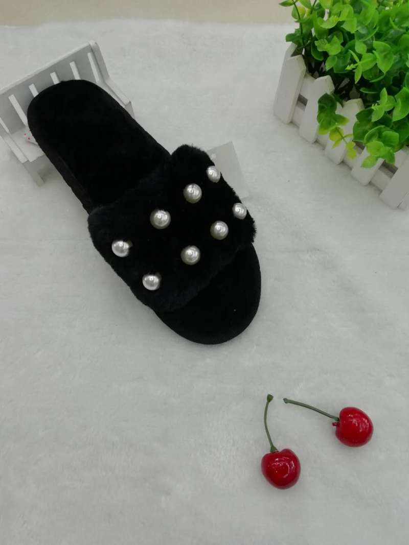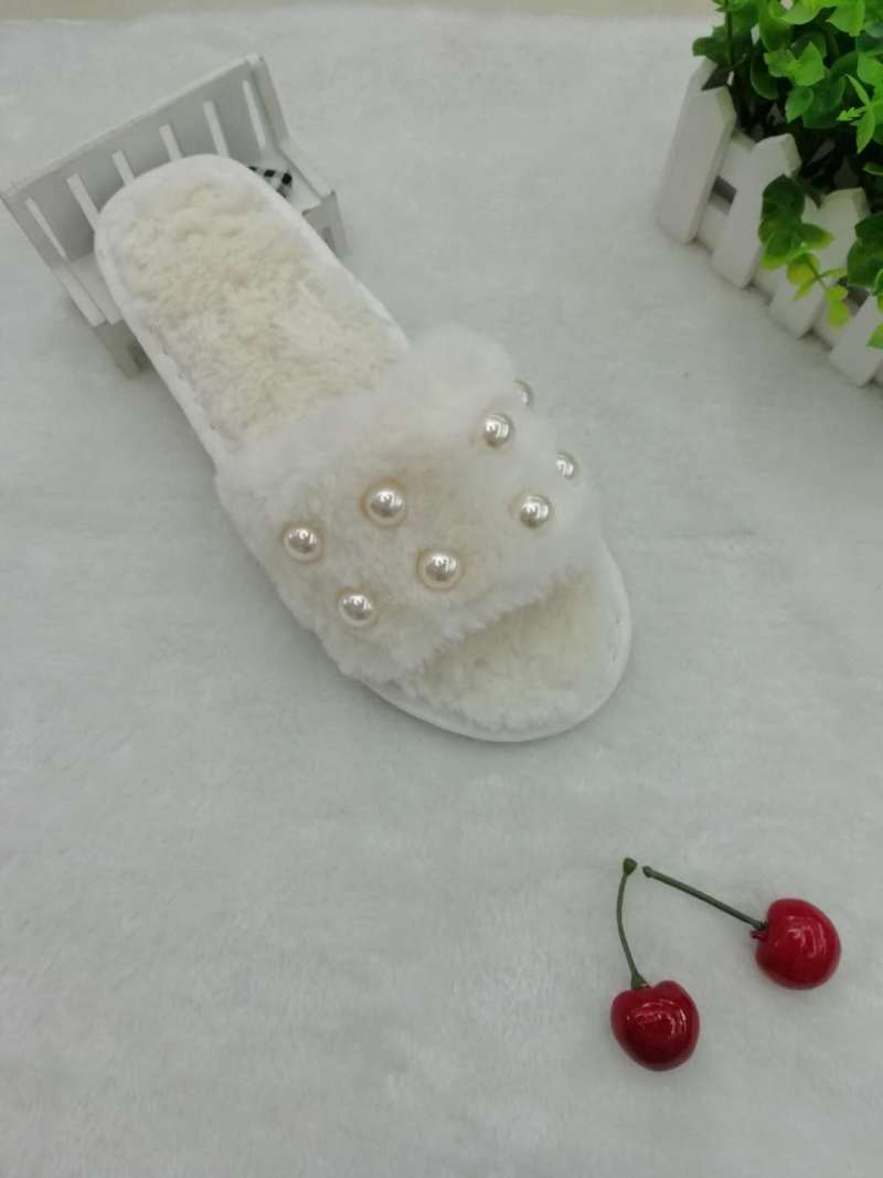 年爆款秋冬新款时尚韩版室内拖鞋月子鞋小珍珠开口毛毛拖鞋