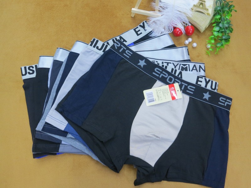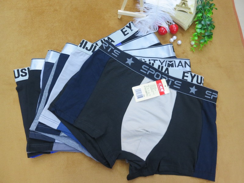 男士拼色全棉纯棉平角内裤 运动宽松四角裤