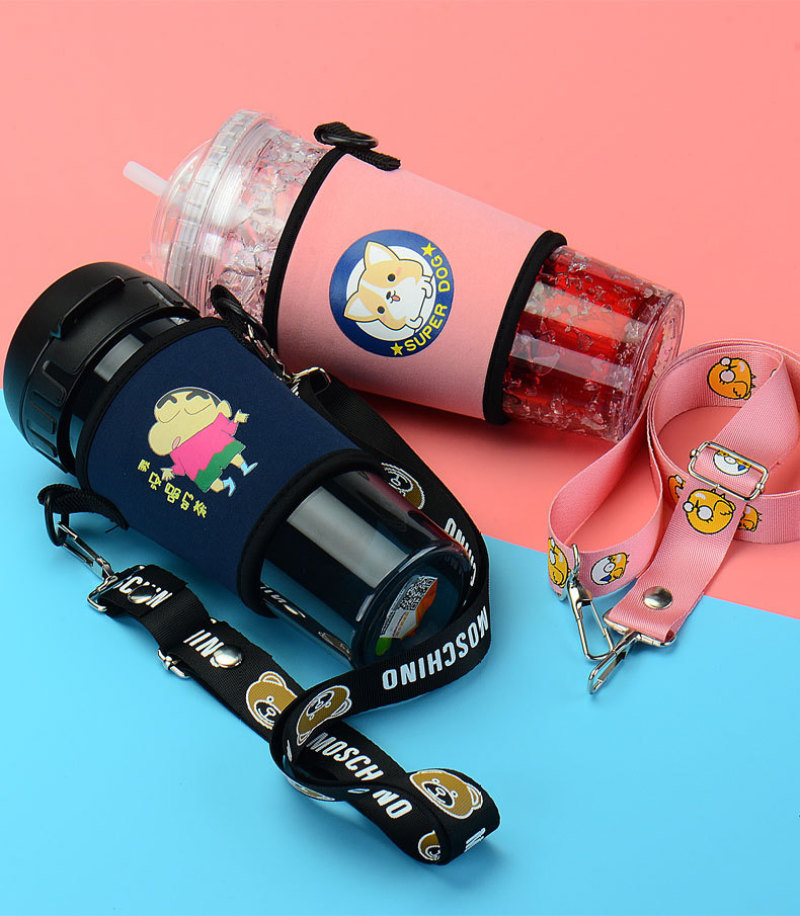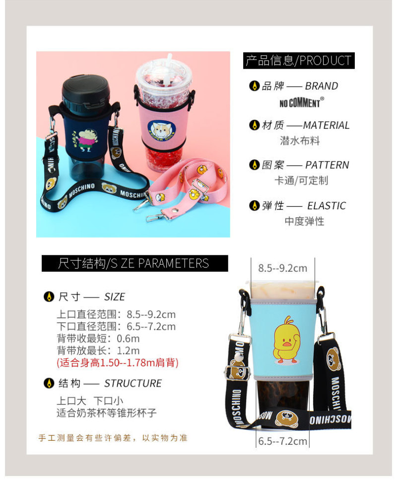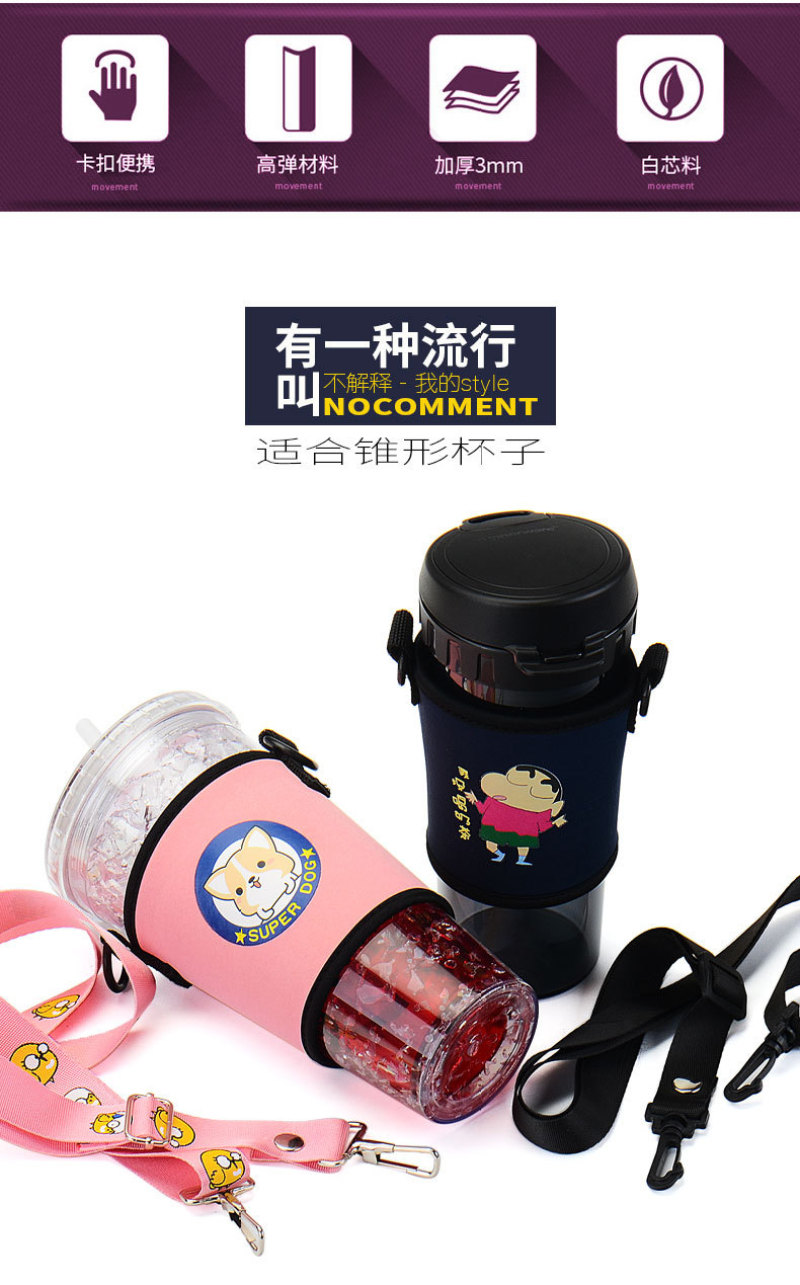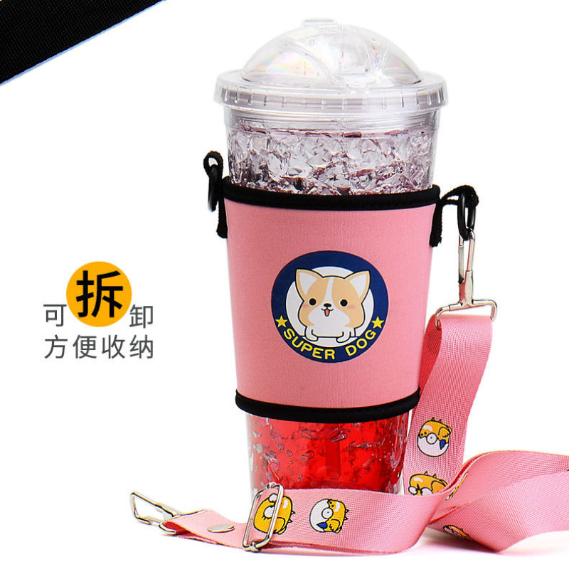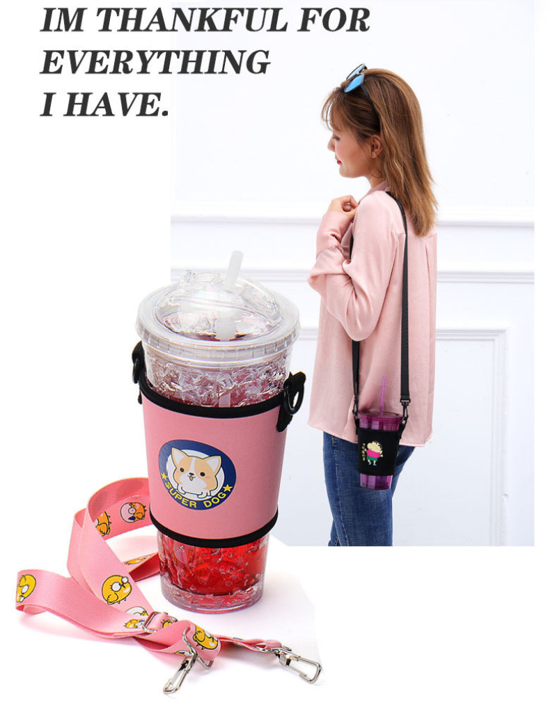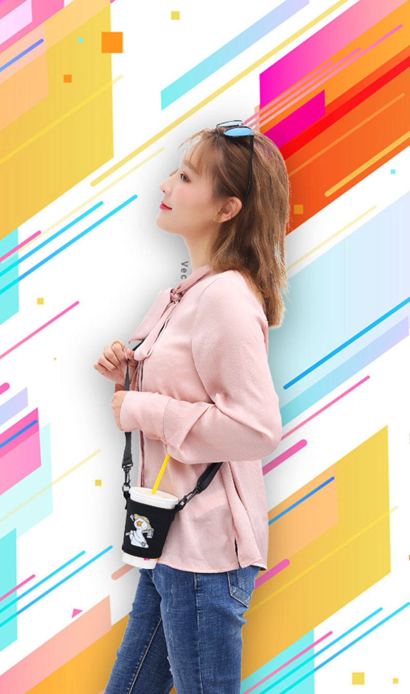 奶茶杯套斜挎定制印字环保手摇杯套含背带便携创意水杯套抖音同款