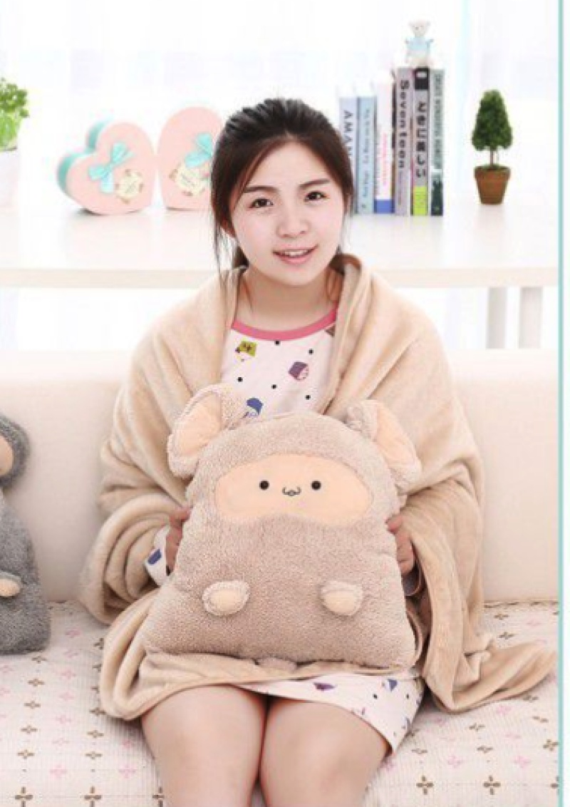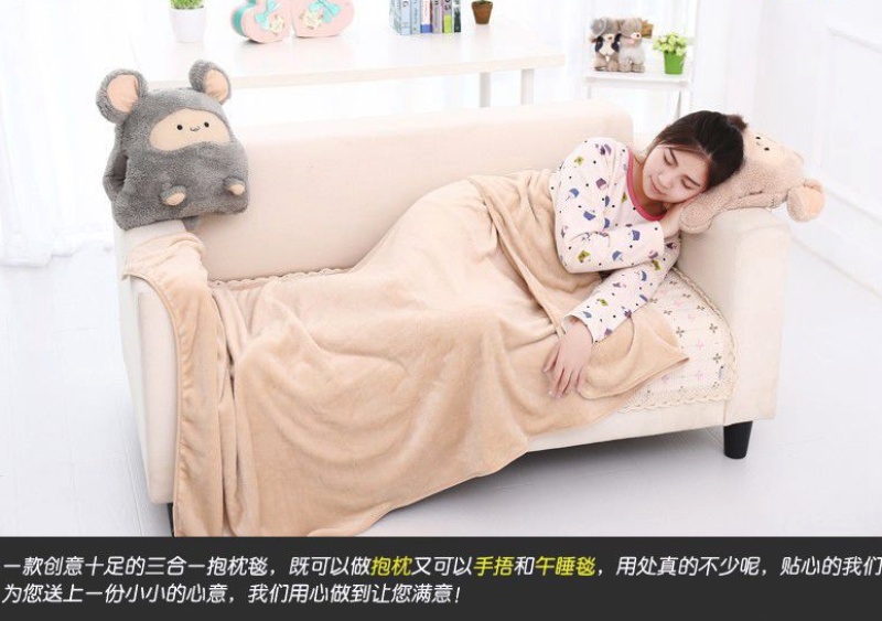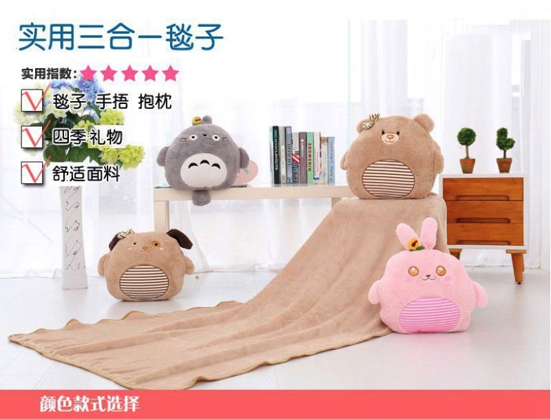卡卡鼠三用空调毯暖手靠垫 抱枕被 毛绒玩具