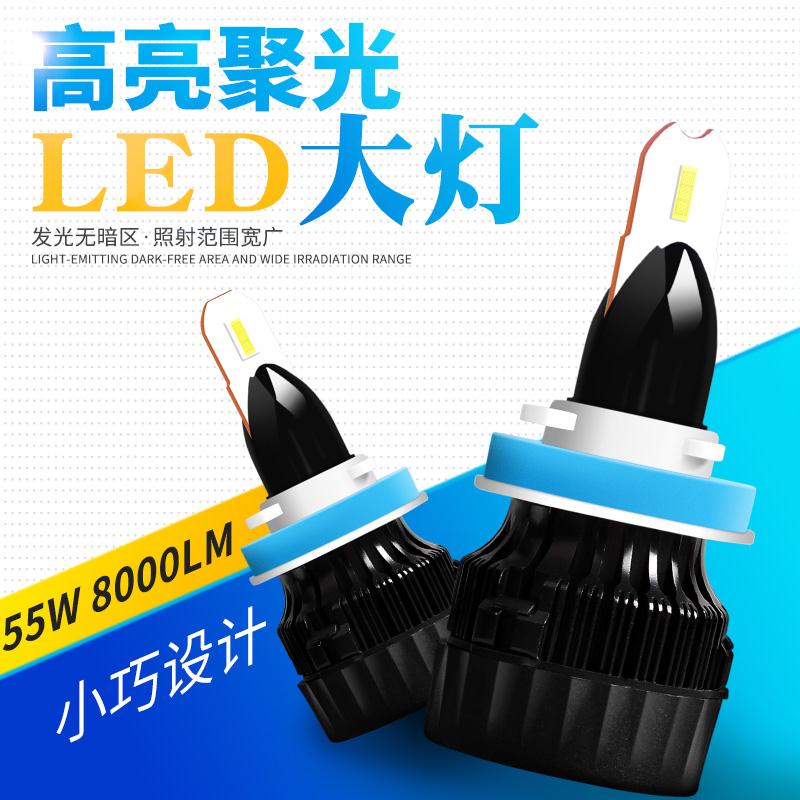 汽车LED大灯超亮55W远光灯H4H7改装前大灯8000LM远光灯聚光