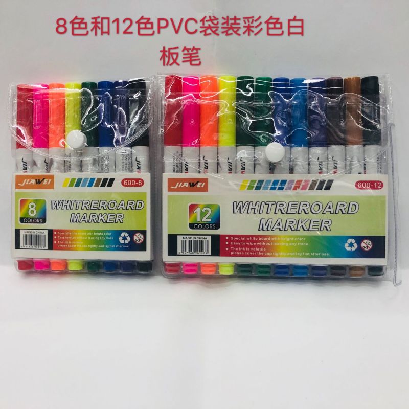 8色和12色PVC袋装白板笔 可擦记号笔 涂鸦笔 彩色白板笔套装