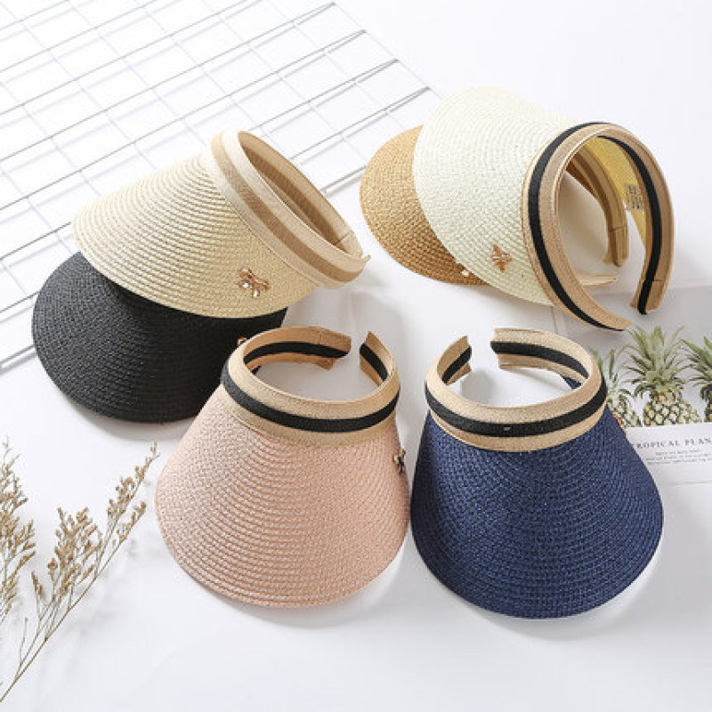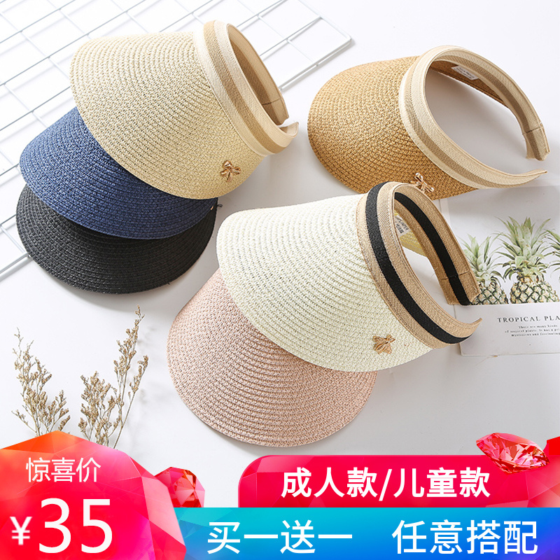 空顶草帽子女出游亲子遮阳帽海边沙滩防晒太阳帽