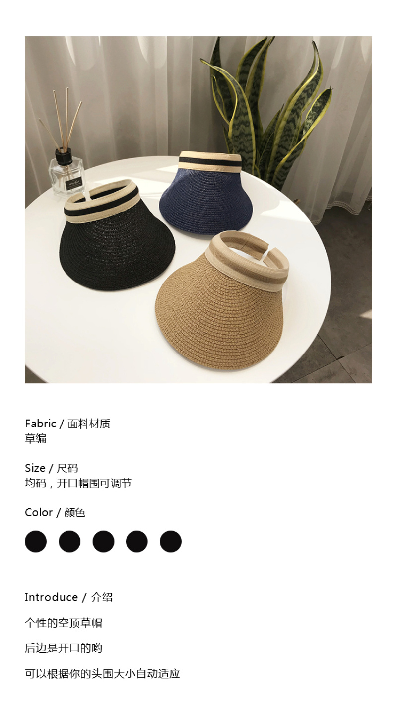韩版草编空顶鸭舌帽子女夏天户外出游防晒遮阳帽太阳沙滩休闲百搭