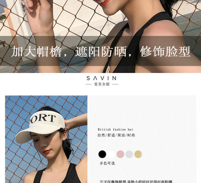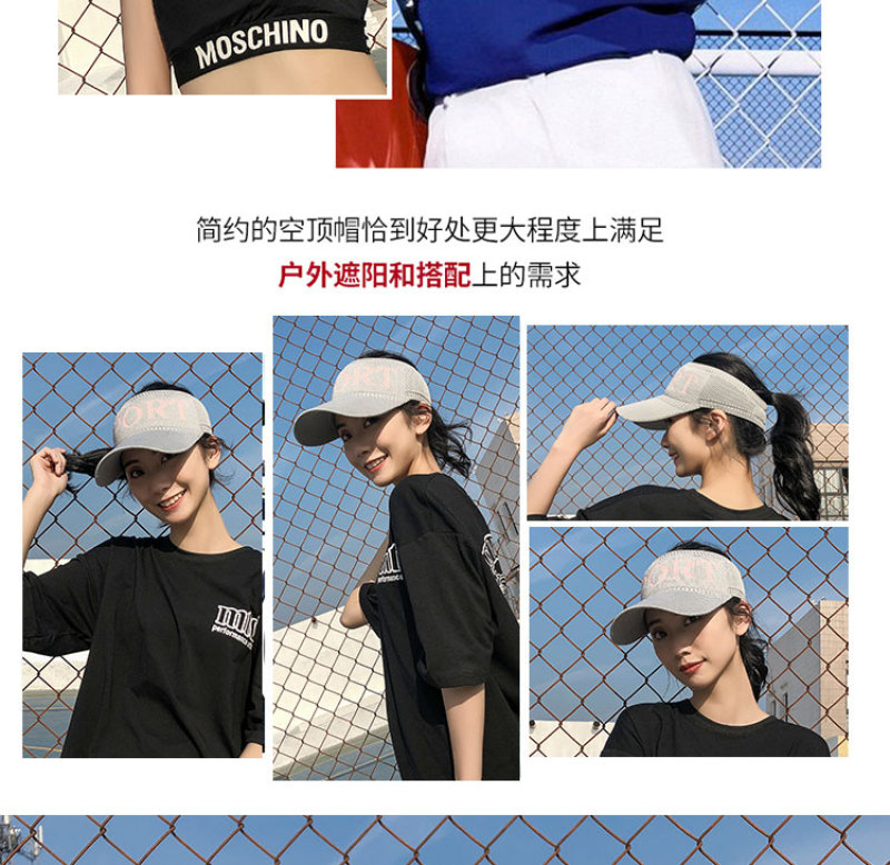 户外运动跑步太阳帽女夏韩版百搭防晒遮阳帽防紫外线空顶网球帽子