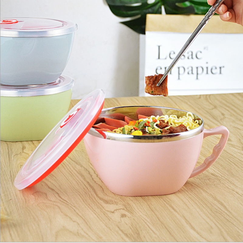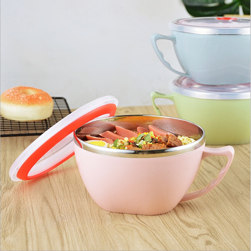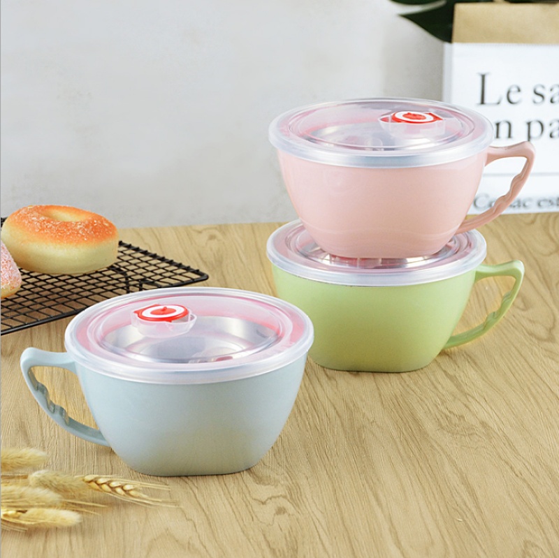 不锈钢泡面碗 加厚北欧色韩式泡面杯保温快餐杯礼品