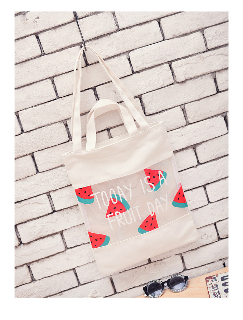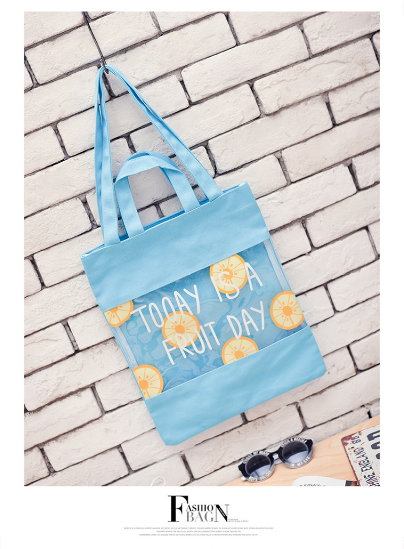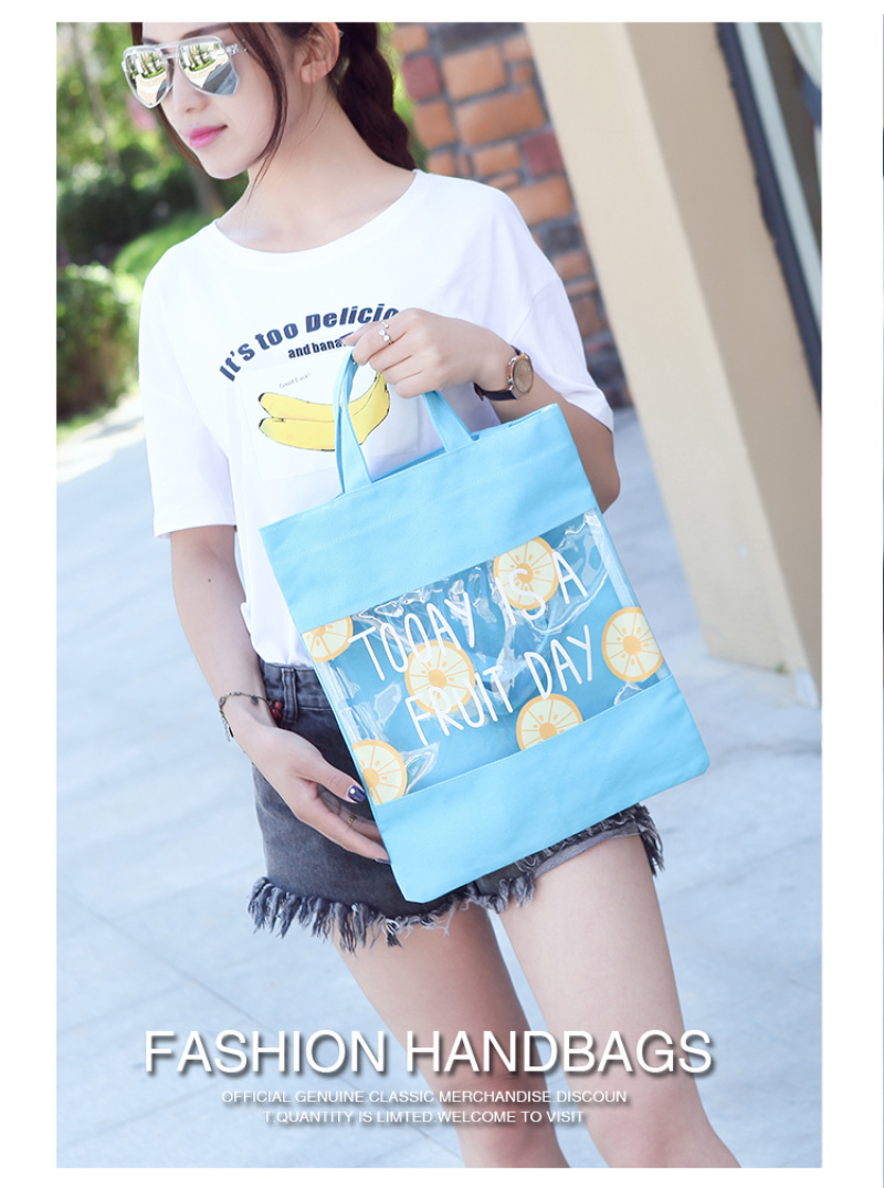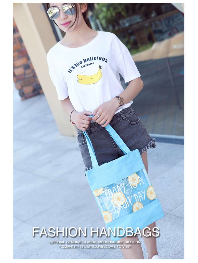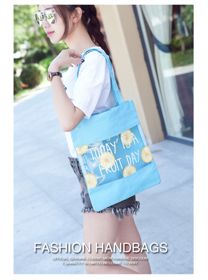 韩版小清新透接英文帆布购物袋果冻沙滩可爱女单肩包时尚包包