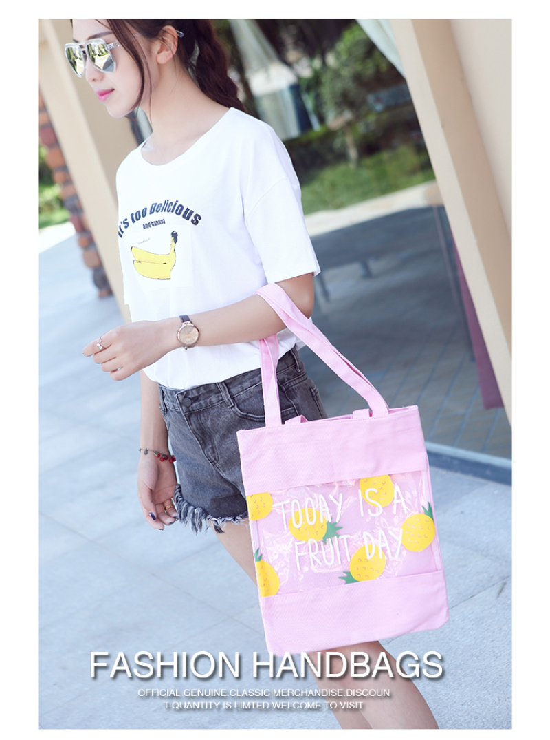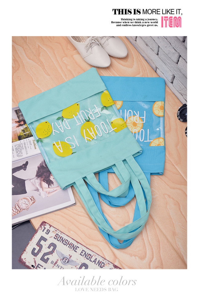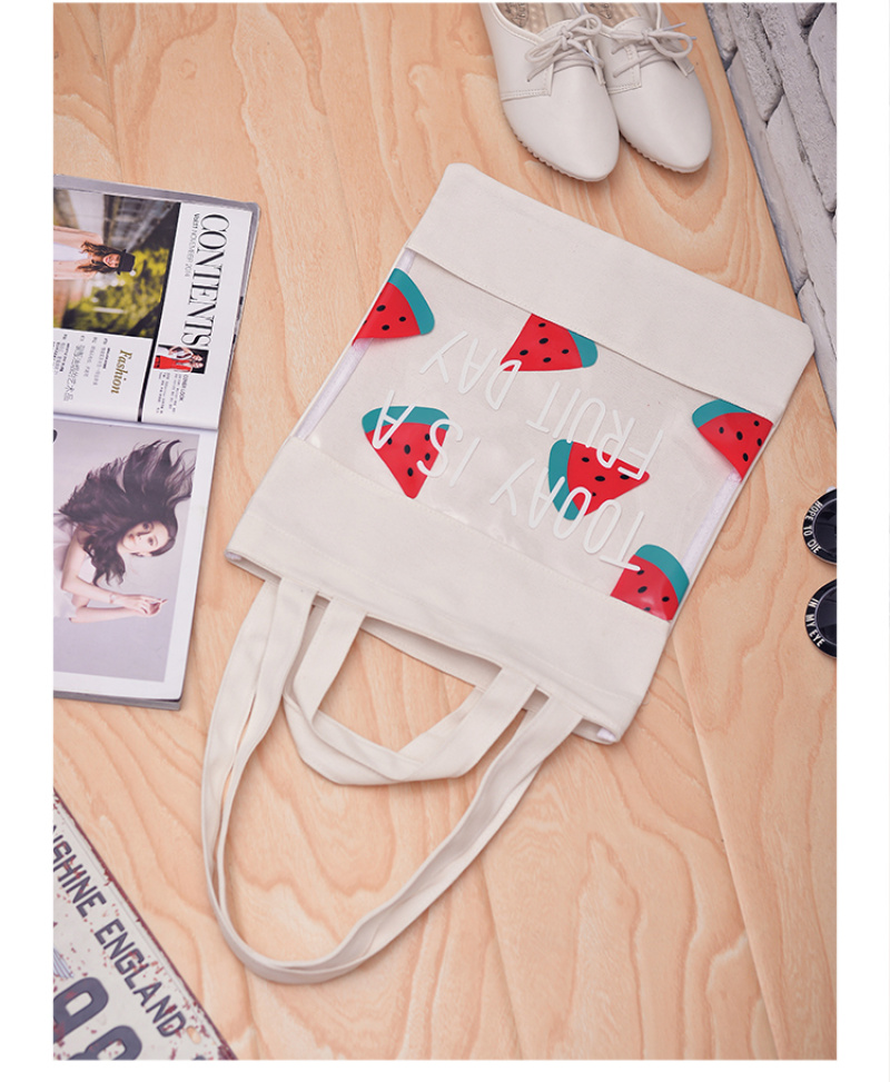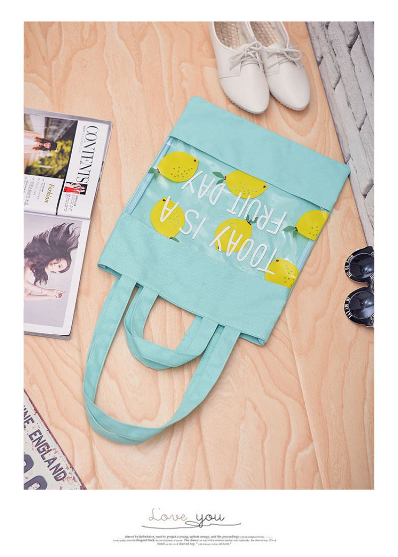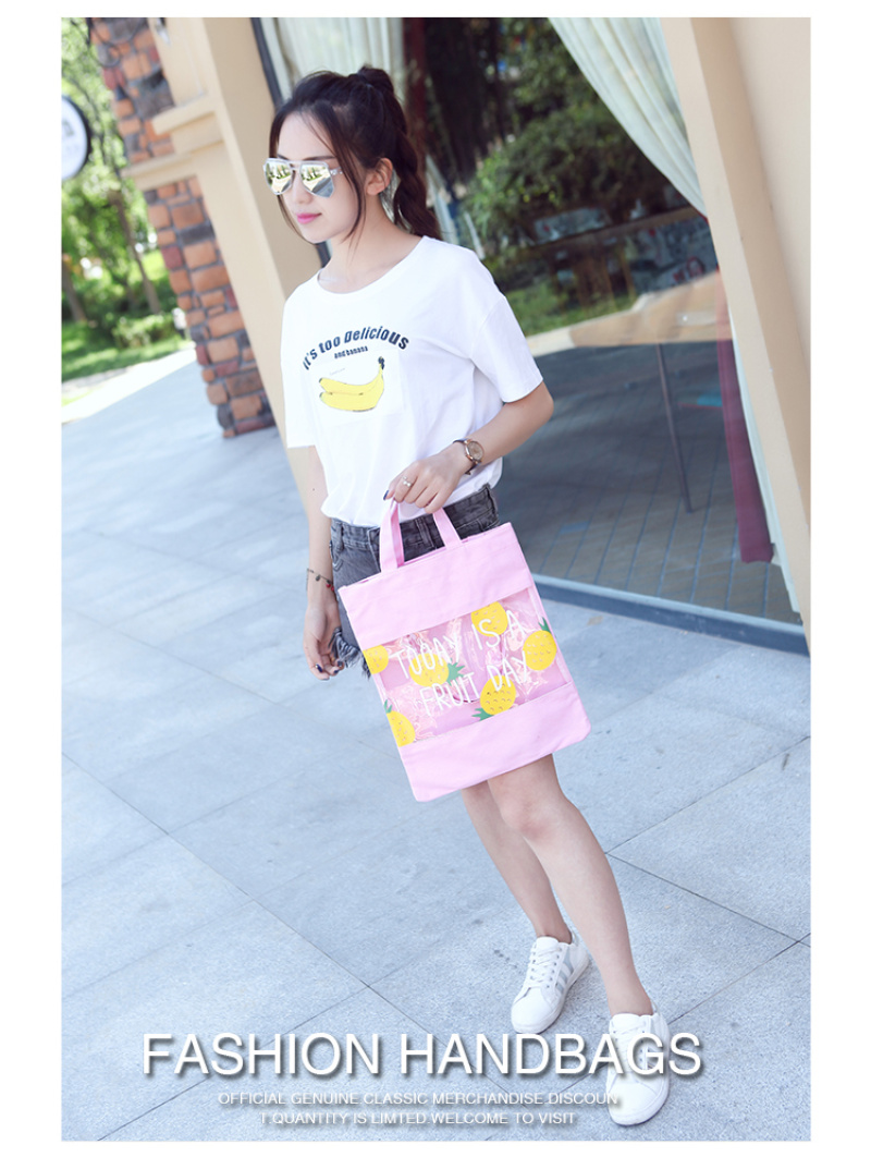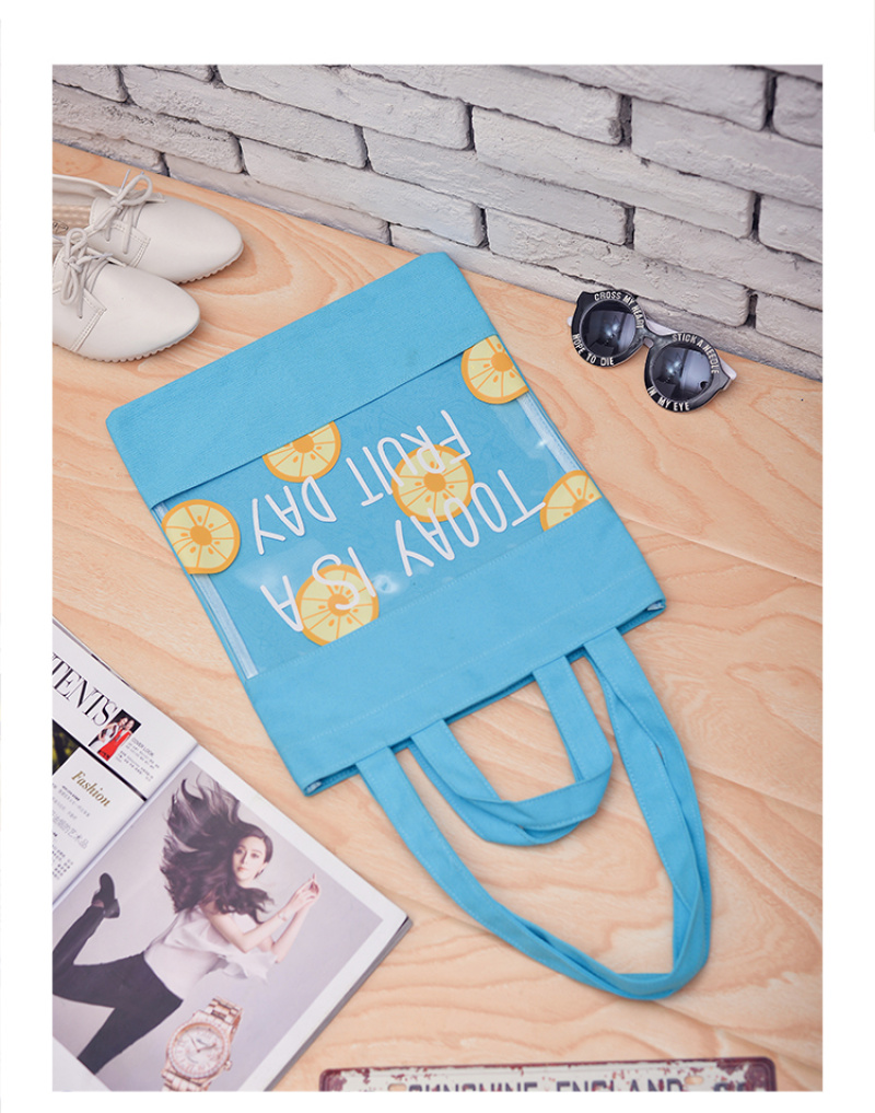 韩版小清新透接英文帆布购物袋果冻沙滩可爱女单肩包时尚包包