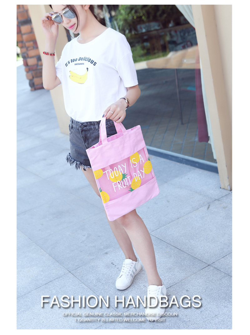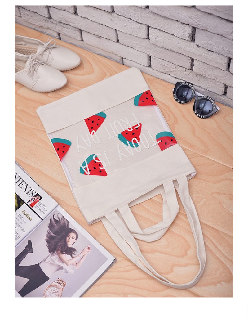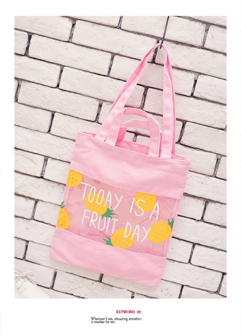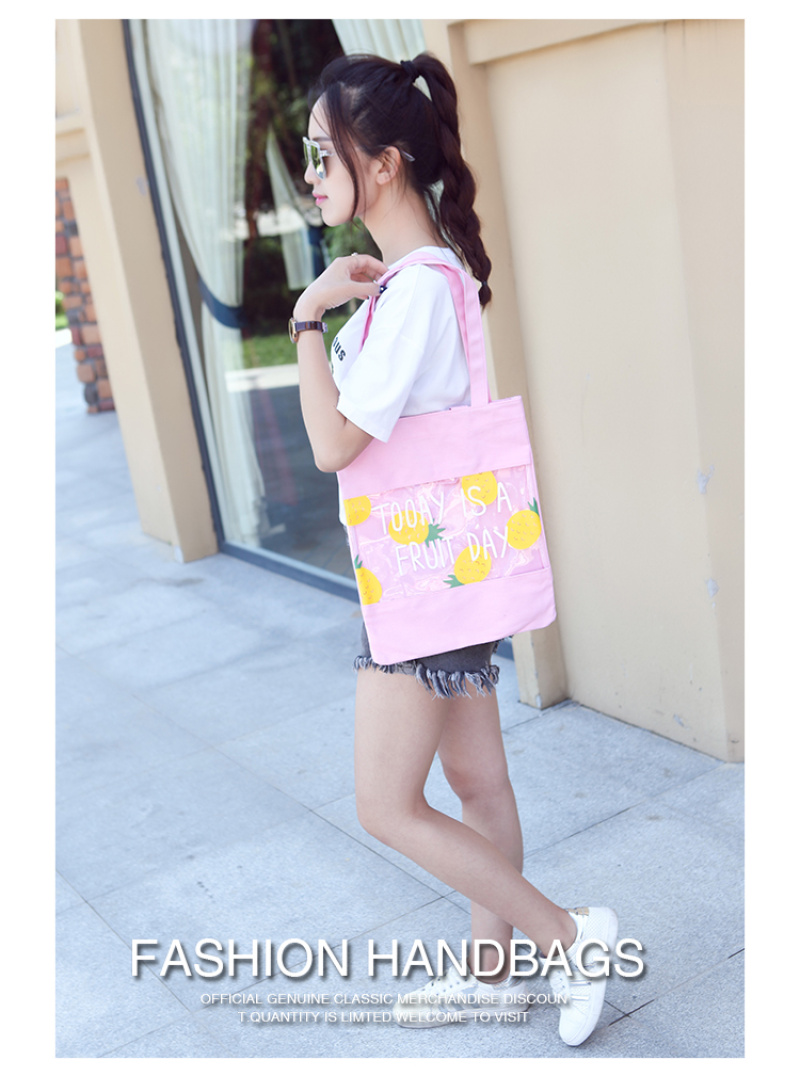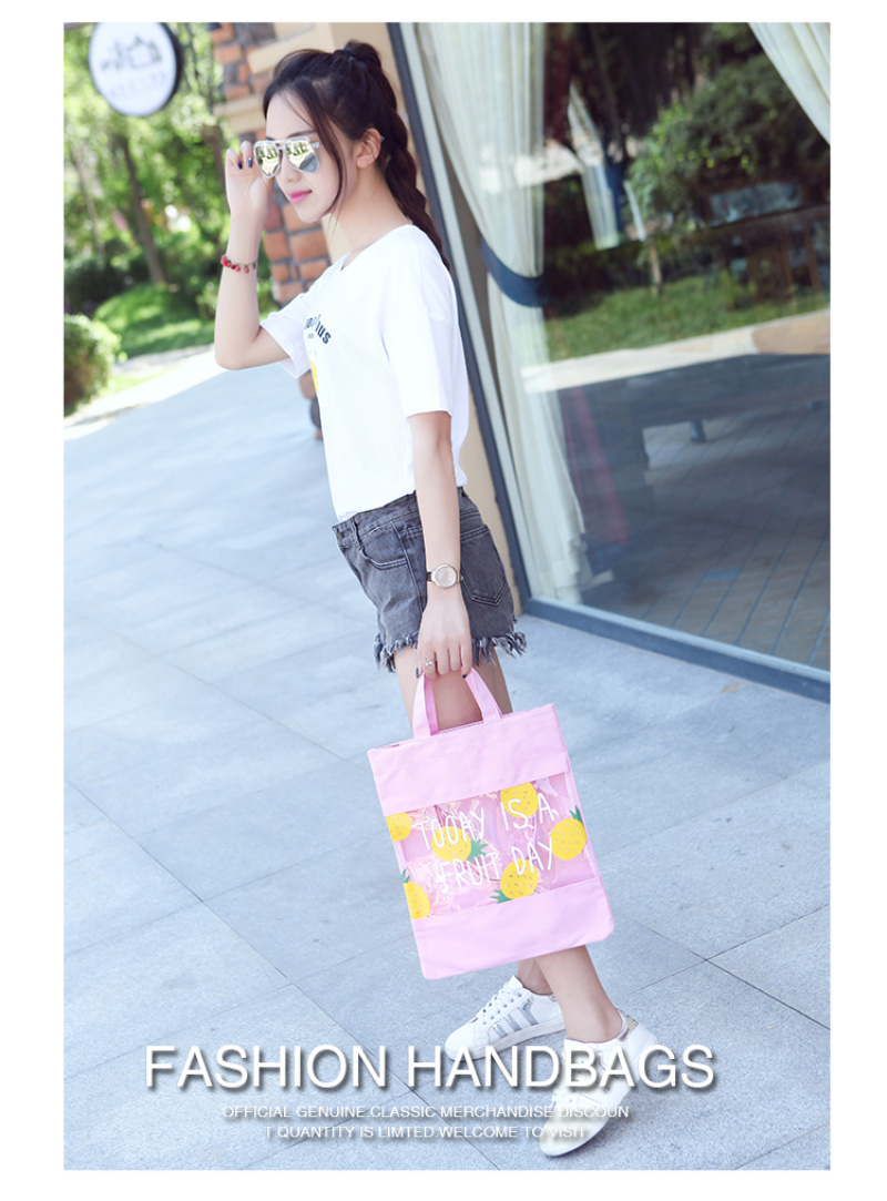 韩版小清新透接英文帆布购物袋果冻沙滩可爱女单肩包时尚包包