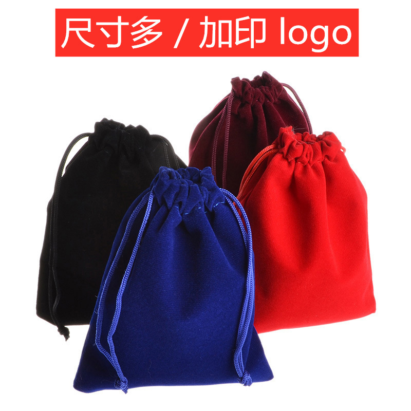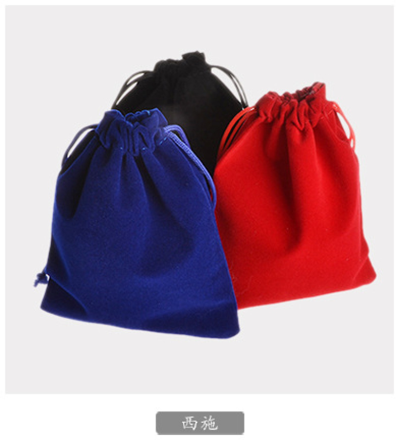 高档首饰小布袋 天鹅绒抽绳束口绒布袋 黑色环保抽绳饰品袋子现货