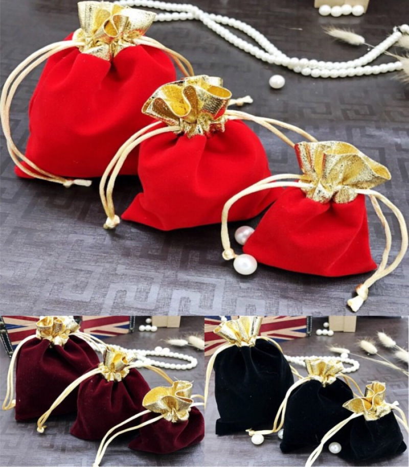 珠宝首饰袋锦囊袋绒布金边收纳文玩袋 抽绳束口袋 礼品包装袋子
