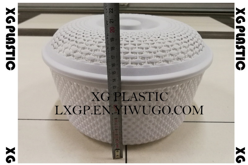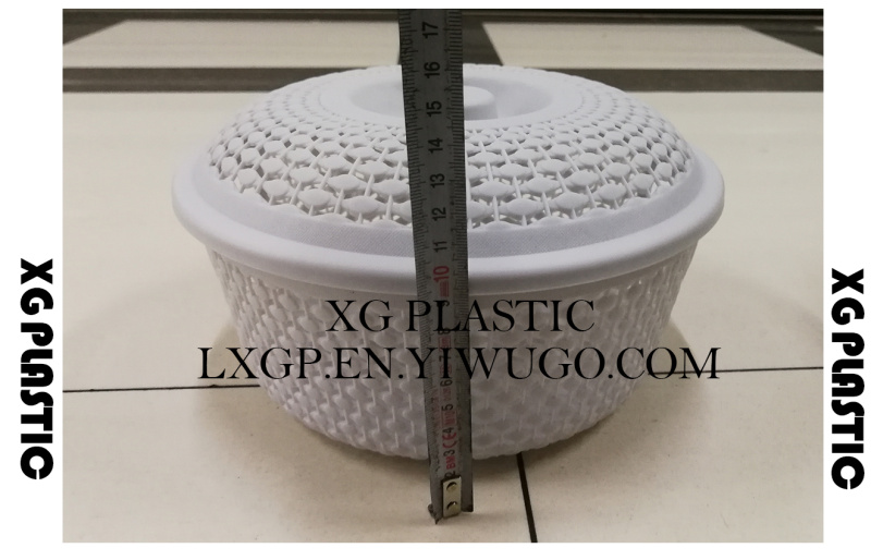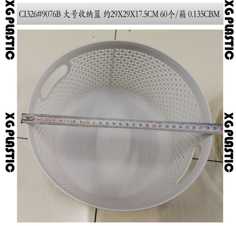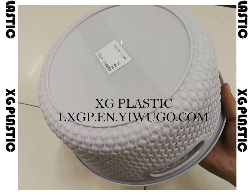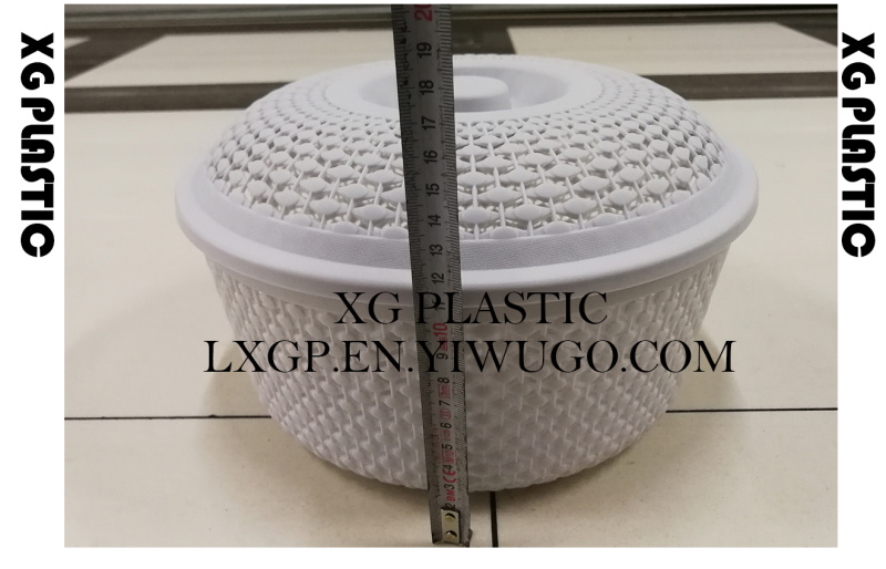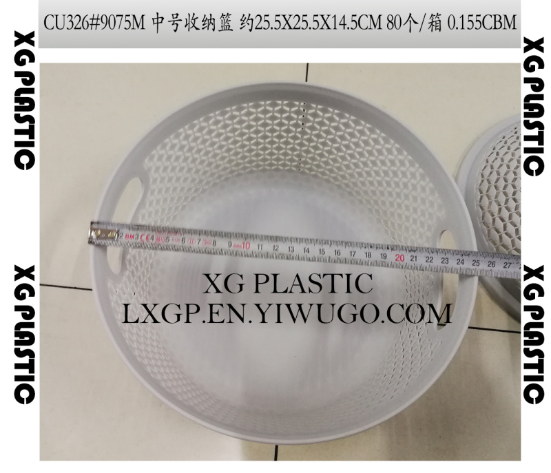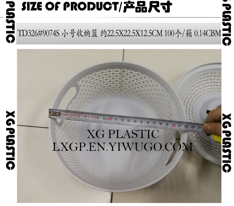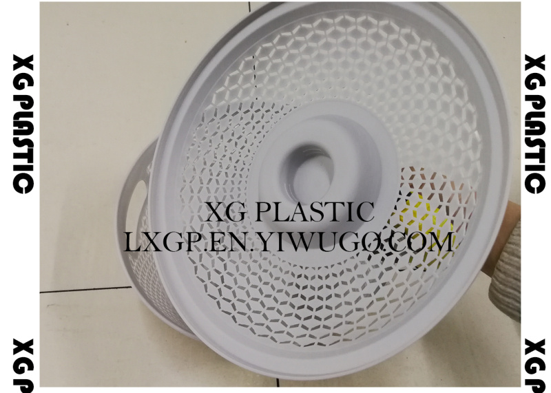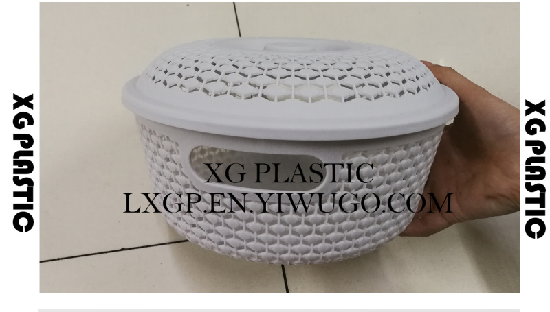 收纳篮带盖新款镂空果蔬沥水篮多功能时尚储物篮塑料PP圆形置物篮