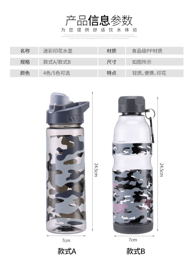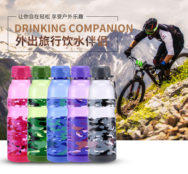 迷彩塑料运动水杯 便携太空杯 密封防漏运动水壶