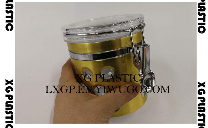 密封罐塑料食品储物罐经典圆点金属时尚卡扣密封罐550ML面膜罐