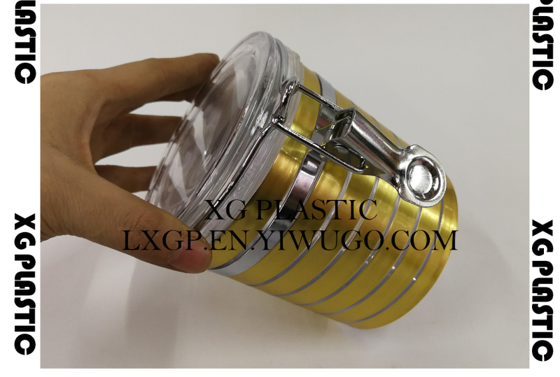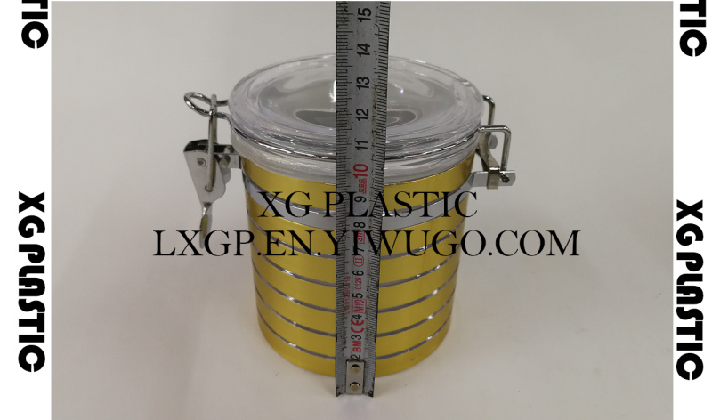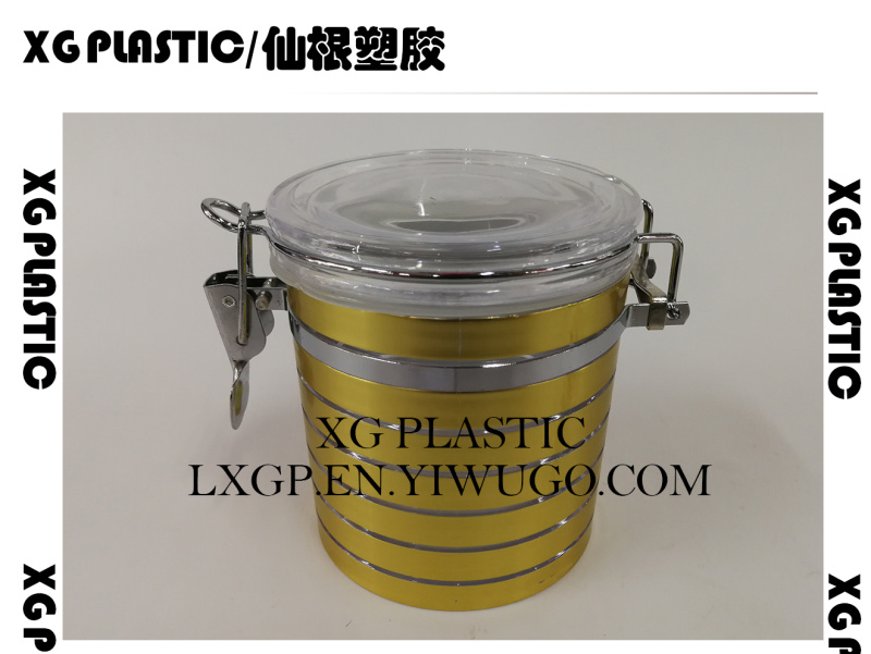 食品密封罐塑料储物罐经典条纹金属时尚卡扣密封罐550ML面膜罐